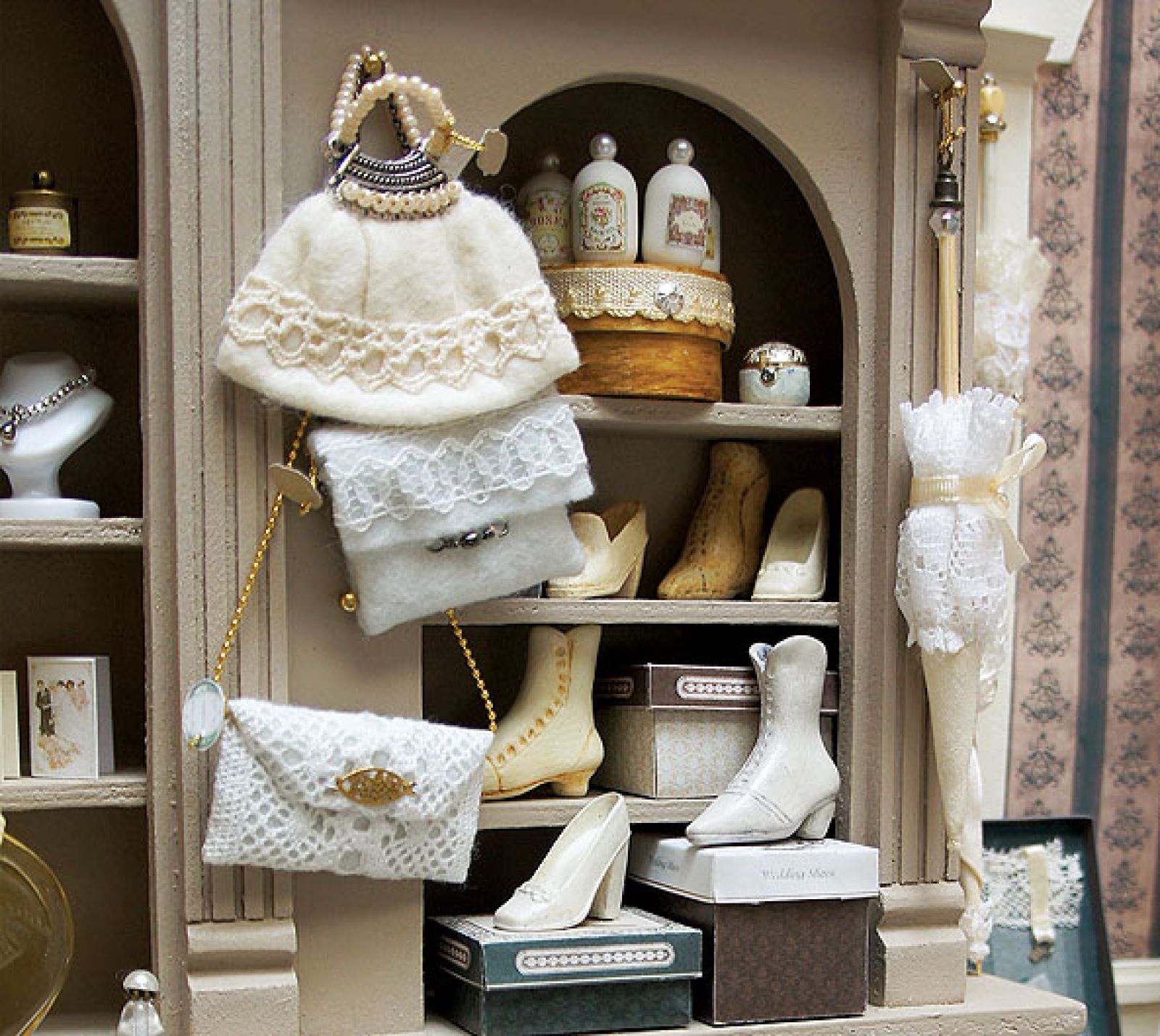 W Niemczech z kolei furorę robiły kuchnie – pokoiki wyposażone we wszystko, co potrzebne do gotowania, od ceramicznych naczyń, po komplety sreber. Panienki z dobrego domu uczyły się prowadzić lalkowy dom, by sprawdzić się potem w roli gospodyni i matki. Dzieci tak samo jak dziś lubiły bawić się w sklep, szkołę, aptekę czy lekarza. Pani Aneta poszła jeszcze dalej. – Zrobiłam kiedyś klinikę weterynaryjną z lat 30. Ze wszystkimi narzędziami medycznymi, stolikiem zabiegowym, parawanem… Zaprojektowałam nawet etykiety na leki. W klinice przyjmuje lekarz, a pacjenci z pupilami czekają na swoją kolej, mogą też zrobić zakupy w sklepiku. Pomysłów na urządzanie ma mnóstwo. – Ich realizacja w skali 1 : 1 byłaby niemożliwa. W skali 1 : 12 nic mnie nie ogranicza – śmieje się Aneta. – W weekend mogę przemeblować cały dom.