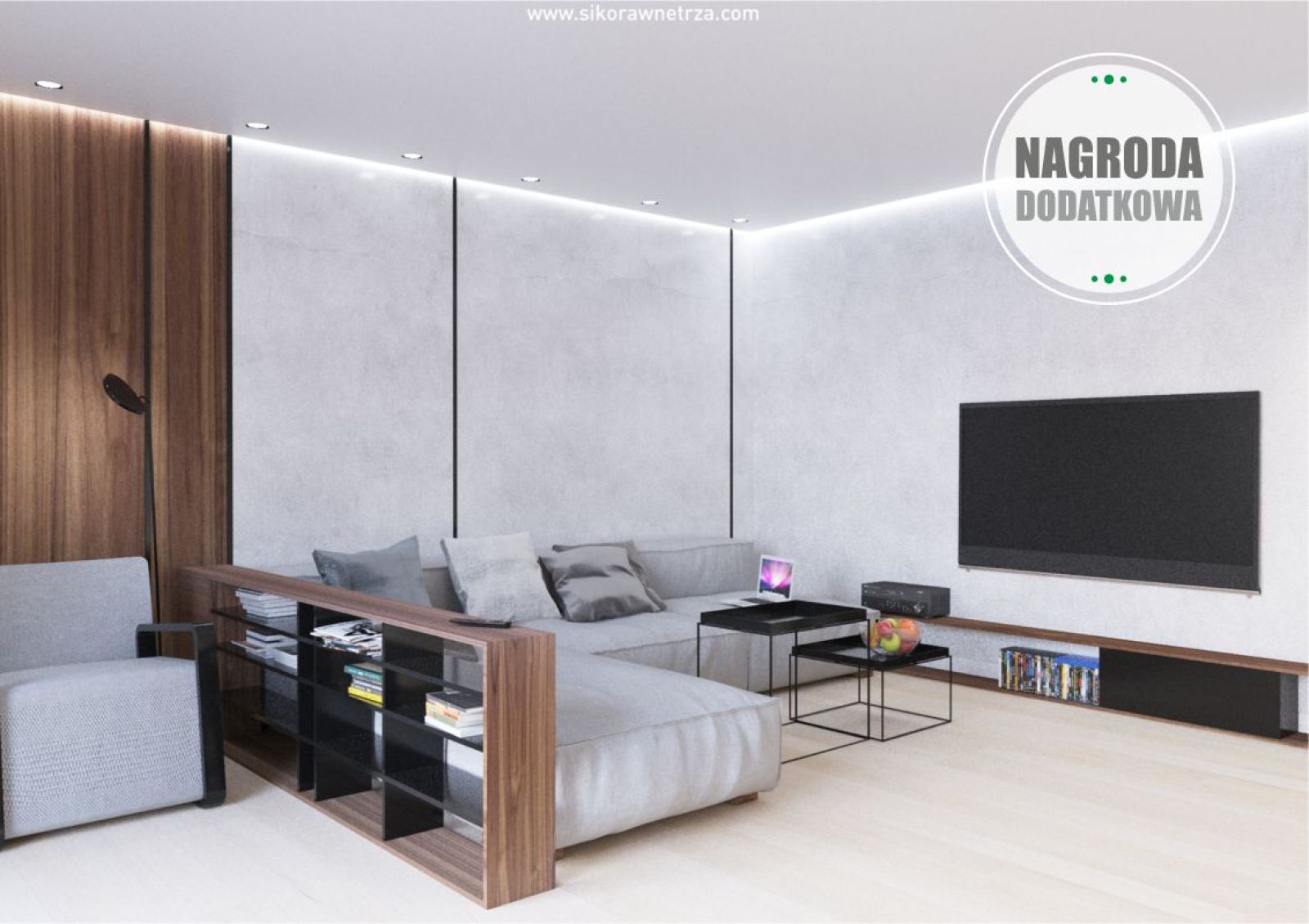 Nagrodę dodatkową - 6 miesięczną reklamę banerową ufundowaną przez portal Graffus otrzymuje pracowni Sikora Wnętrza+Architektura za projekt „Minimalizm i beton”.