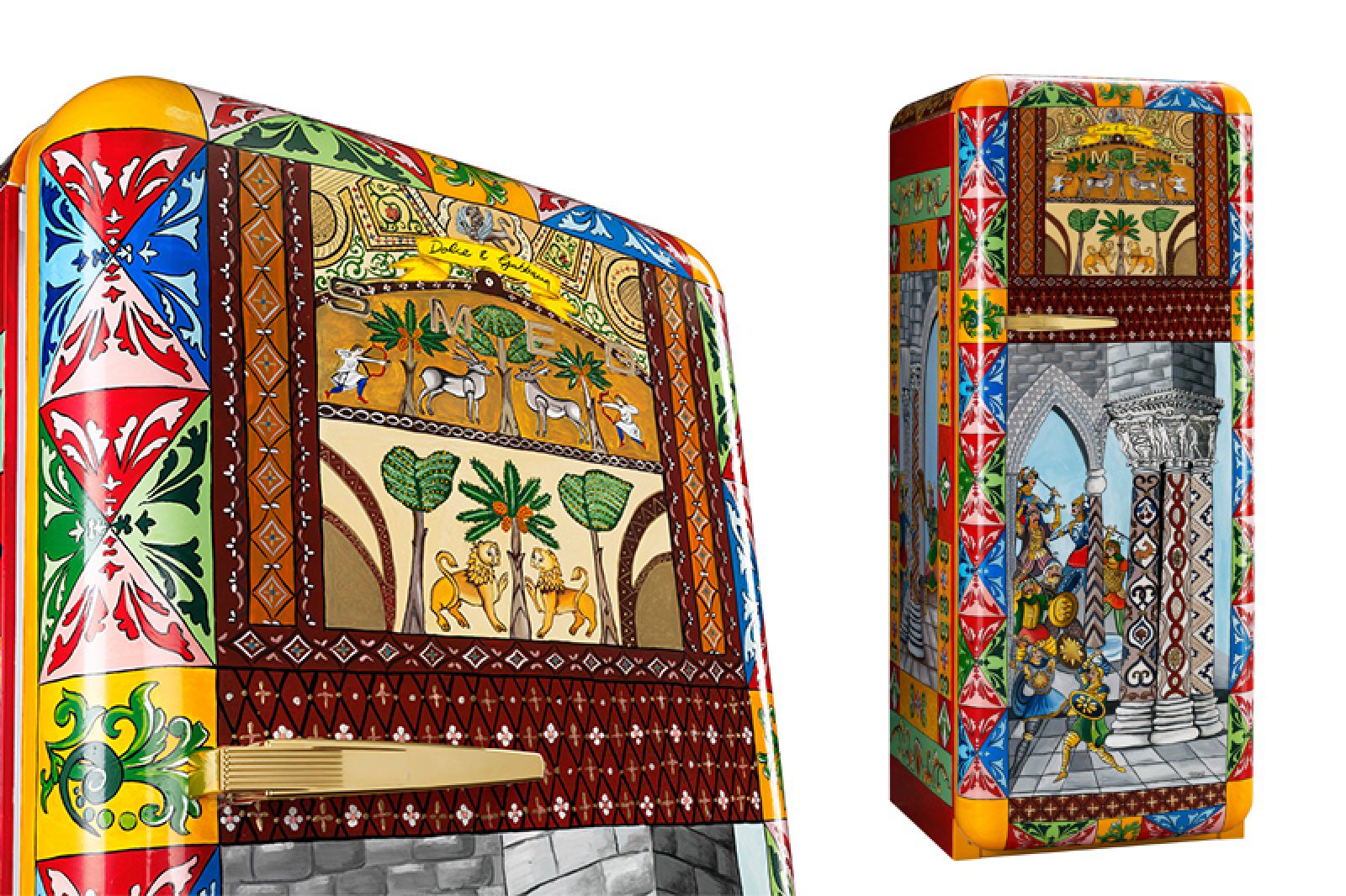 Zupełnie nowa odsłona znanych z vintage look lodówek Smeg. A to za sprawą niespodziewanej współpracy dwóch włoskich super marek - Smeg i Dolce & Gabbana. Wszystkie lodówki są precyzyjnie ręcznie malowane przez wybitnych sycylijskich artystów. To wykwalifikowani rzemieślnicy, w tym artysta i ekspert od prac konserwatorskich - Salvatore Sapienza. W kolekcji znajdziemy 100 wzorów. Cena? Bagatela - 30.000 £ sztuka.