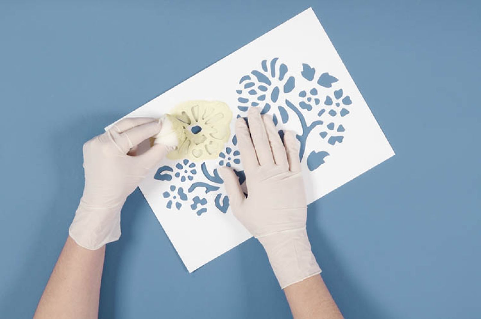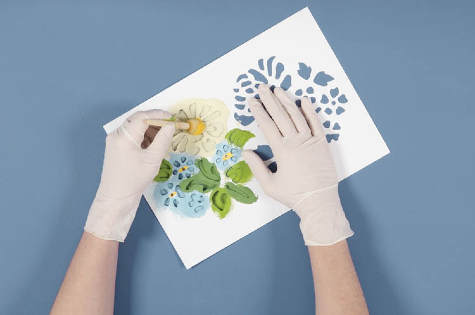 Jeśli zamierzasz namalować ornament kilka razy, lepiej będzie zrobić szablon, który nie nasiąknie farbą. Doskonale nada się do tego folia z plastikowej teczki albo niepotrzebne zdjęcie rentgenowskie.