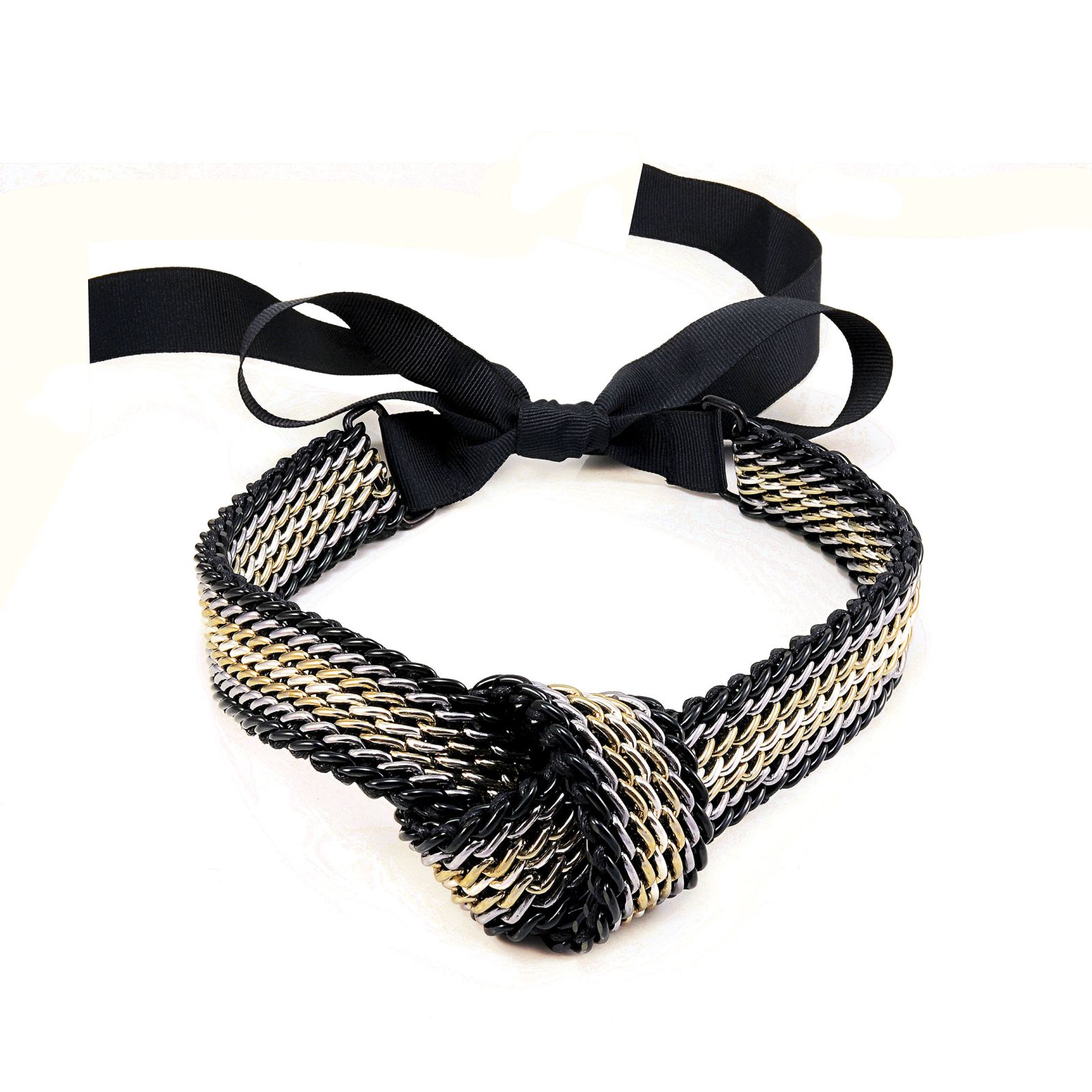 Upleciona... z aluminium, wstążek, kolorowych sznurków. Bardzo elegancka. Biżuteria Krysi Odolińskiej to skarby nowoczesnej księżniczki.