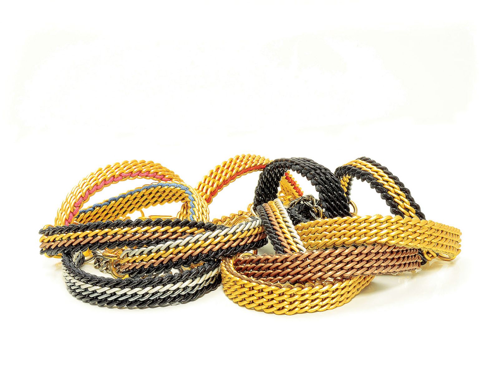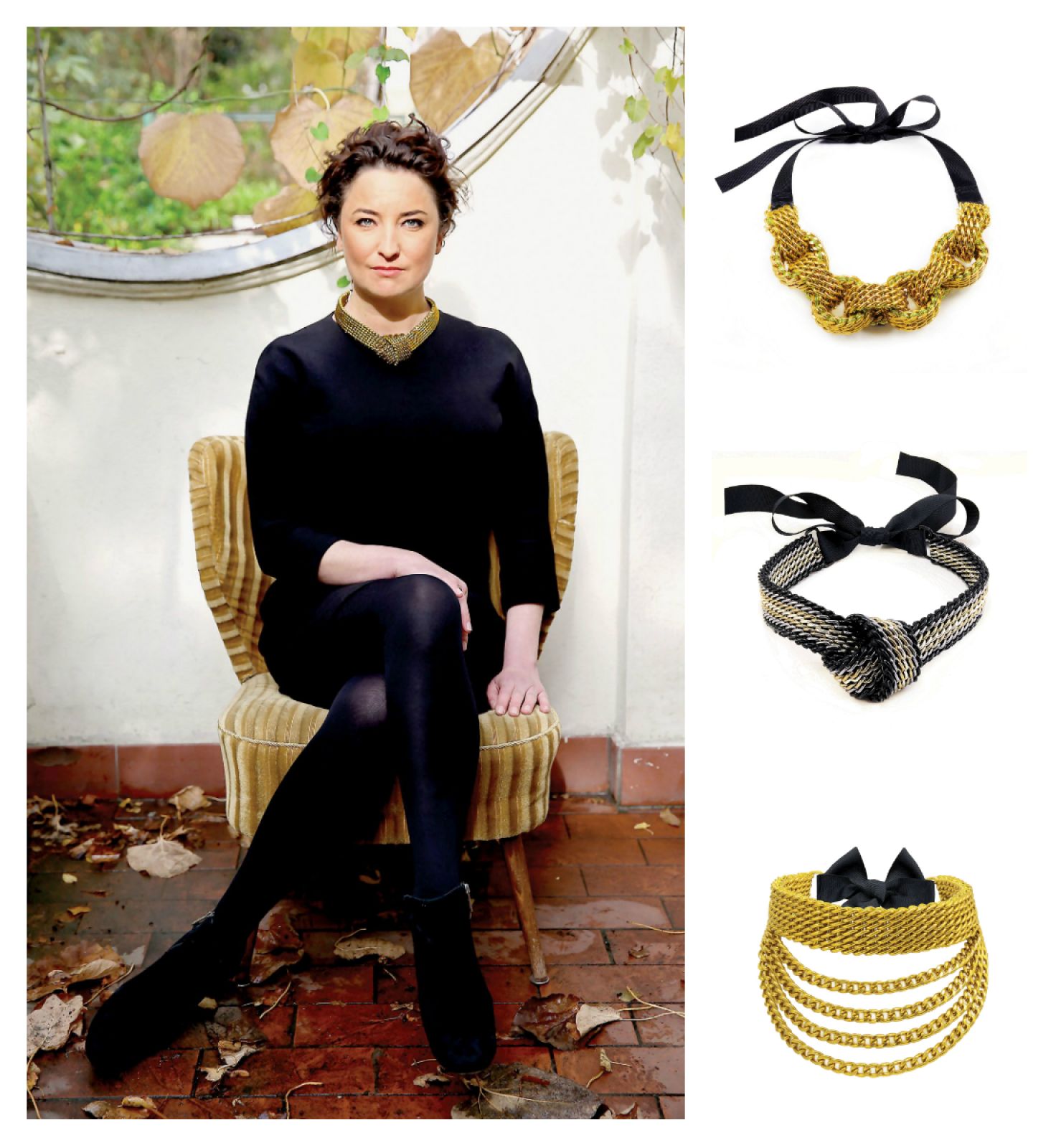 znalezieniu odpowiedniego splotu, bo biżuteria robiona jest ręcznie, i traktowaniu go jako kawałek tkaniny, który można przyciąć albo związać na supeł. – Materiałem jest aluminium poddawane galwanizacji. To jedyny metal, który nosi się komfortowo, nie uczula i jest lekki – wyjaśnia Krysia. Szlachetne kruszce zastąpiła więc szlachetnym dizajnem. Lubi kolor złota zestawiony z czernią, a wiosną i latem wplata też trochę turkusu, różu. Markę nazwała KOD.