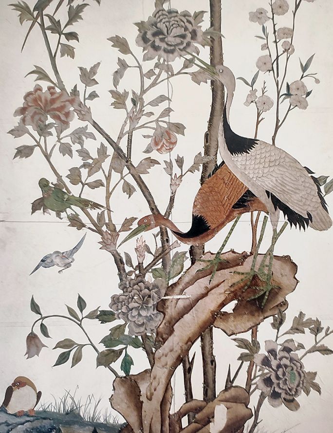 Podziwiam bogactwo stosowanych przez panią technik – są jak wycieczka w czasie i przestrzeni. We freskach posługuje się pani monochromatycznym en grisaille niczym Giotto albo jakiś XVIII-wieczny pejzażysta, a panele z chinoiserie mogłyby być przepustką na dwór chińskiego cesarza.