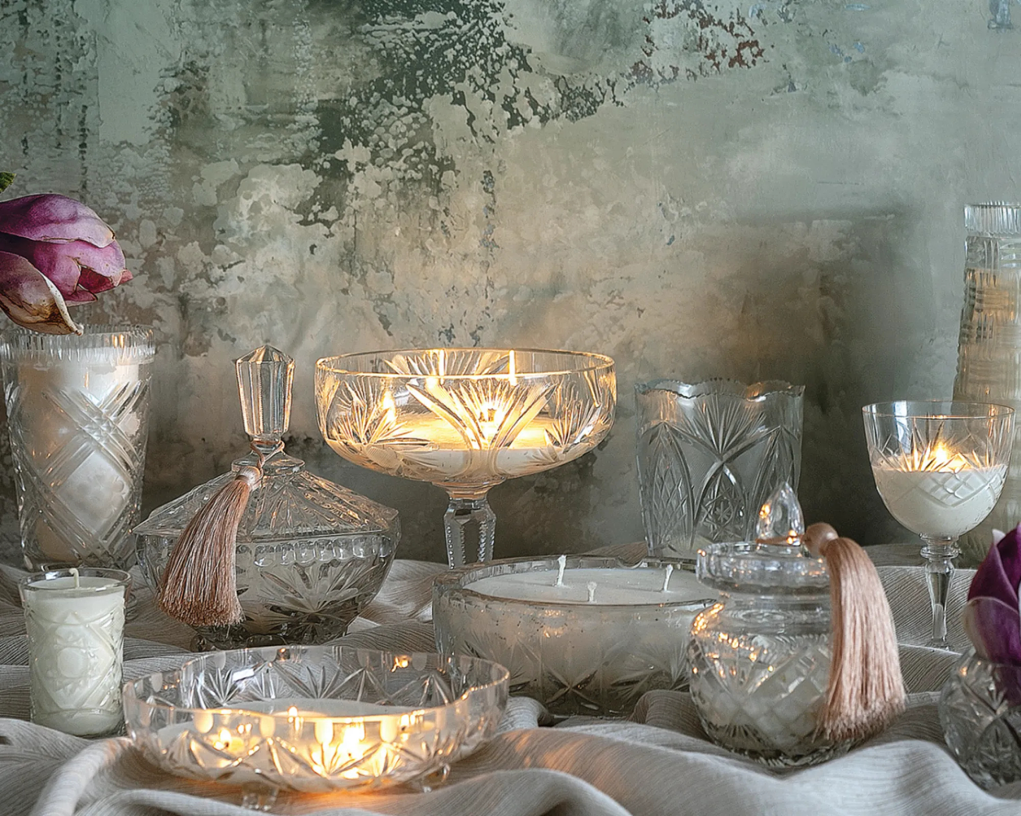 Drugie życie kryształów. Malla Vintage komponuje pięknie pachnące świece sojowe w kryształowych naczyniach