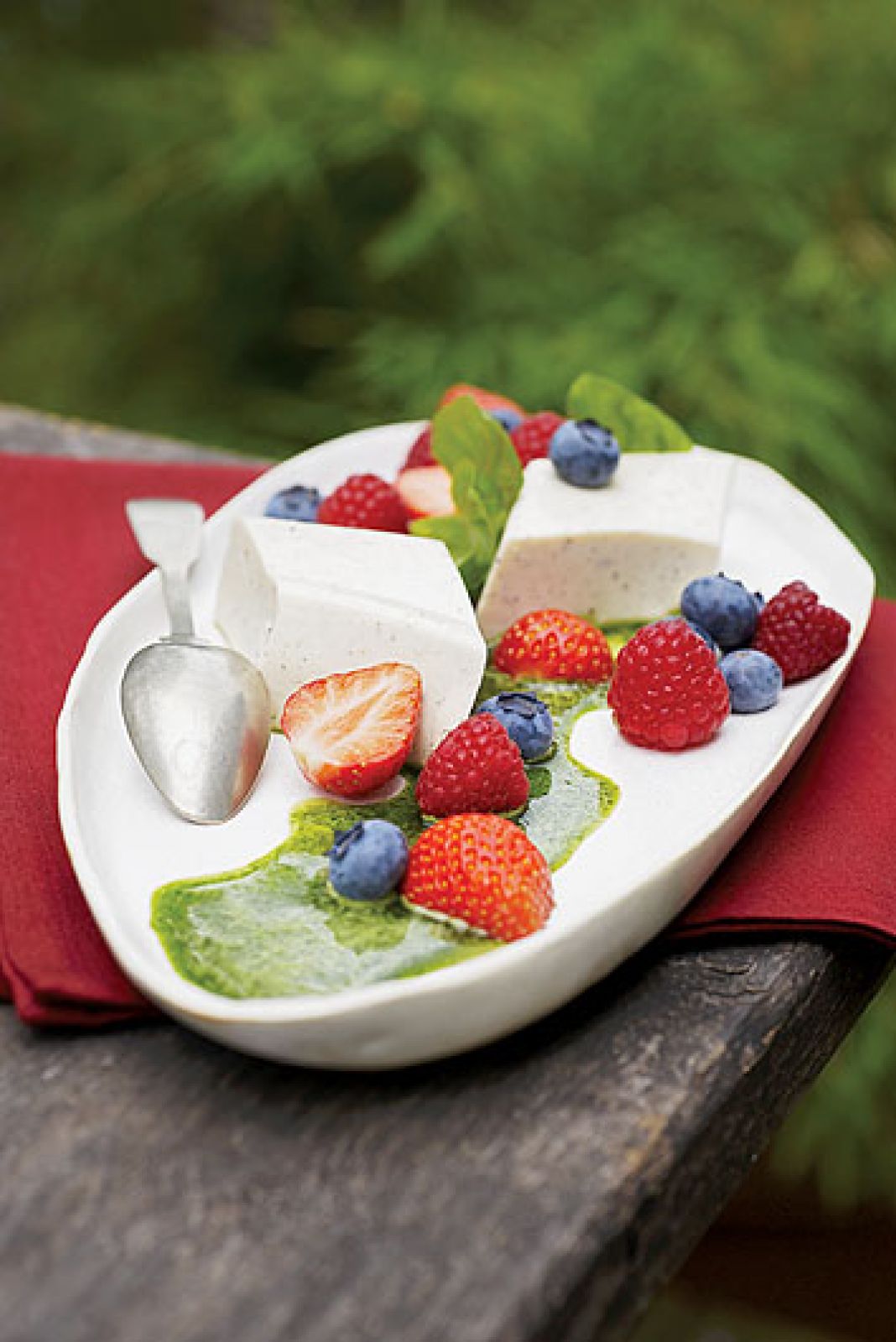 Panna cotta z salsą bazyliową i owocami