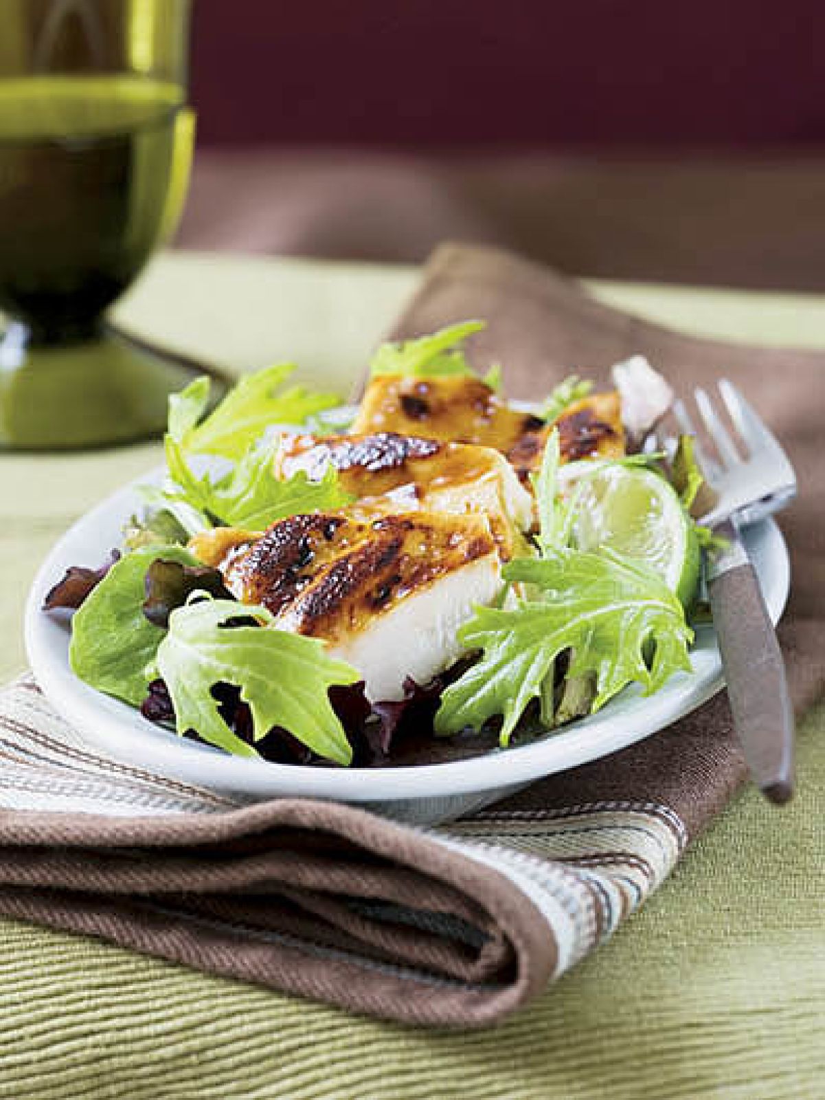 Obierz mango, usuń pestkę, pokrój w kostkę. Filety dopraw solą i pieprzem, skrop sokiem z dwóch limonek. Rozgrzej na patelni masło, smaż mango przez 3 minuty, dodaj sok z jednej limonki, cukier, pieprz i 2 łyżki wody. Smaż jeszcze chwilę, mieszając. Wrzuć posiekaną kolendrę, zamieszaj i odstaw. Filety upiecz na gorącym grillu w piekarniku po 5 minut z każdej strony. Przełóż na talerze, polej salsą, udekoruj plasterkami cytryny i limonki.
