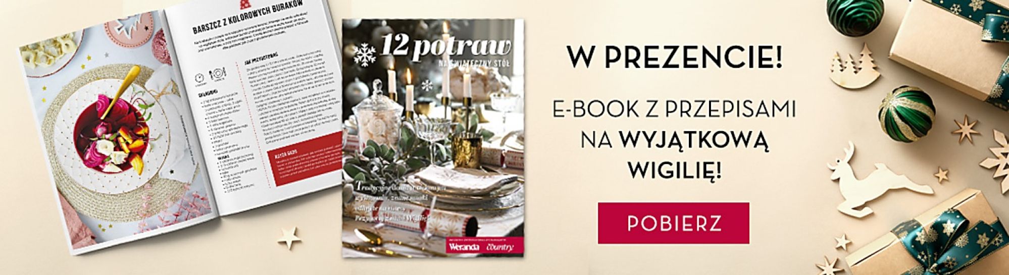 Przepisy kulinarneZaciekawieni? To dobrze! Będzie smacznie i elegancko. Z okazji zbliżających się Świąt mamy dla Was prezent przygotowany przez redakcję Werandy. Oddajemy w Wasze ręce darmowego e-booka z naszymi ulubionymi przepisami na świąteczne dania.