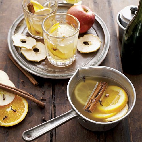 Zagrzej cydr w garnku, dorzuć goździki, anyż, gałkę, cynamon i wanilię. Podgrzewaj, nie doprowadzając do wrzenia przez 10 minut. Wyjmij wanilię, rozkrój wzdłuż i wrzuć z powrotem. Wyciśnij sok z jednej pomarańczy, wlej do cydru, ewentualnie dosłodź cukrem. Drugą pomarańczę oraz jabłko pokrój w plasterki i włóż do szklanek. Zalej ciepłym cydrem.