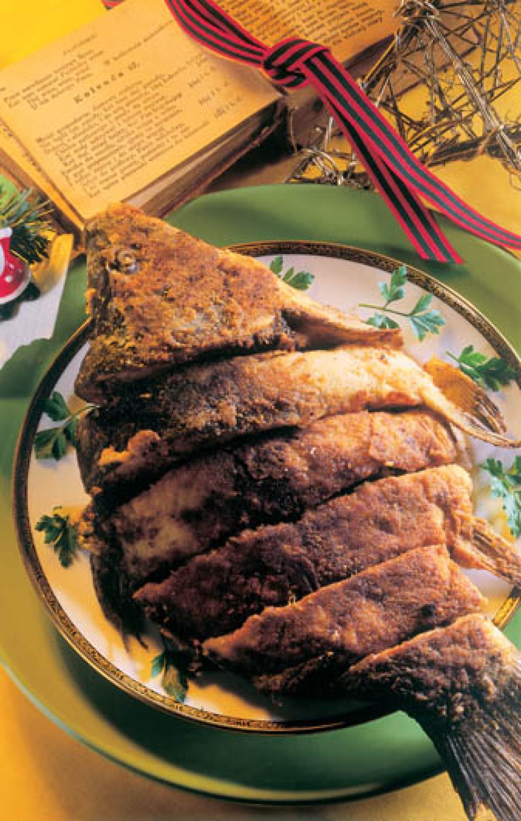 Karpia umyj, oczyść, pokrój i osusz. Oprósz solą, popieprz, skrop sokiem z cytryny, odstaw na godzinę. Następnie obtocz w mące, roztrzepanym jajku i bułce tartej. Usmaż na maśle.