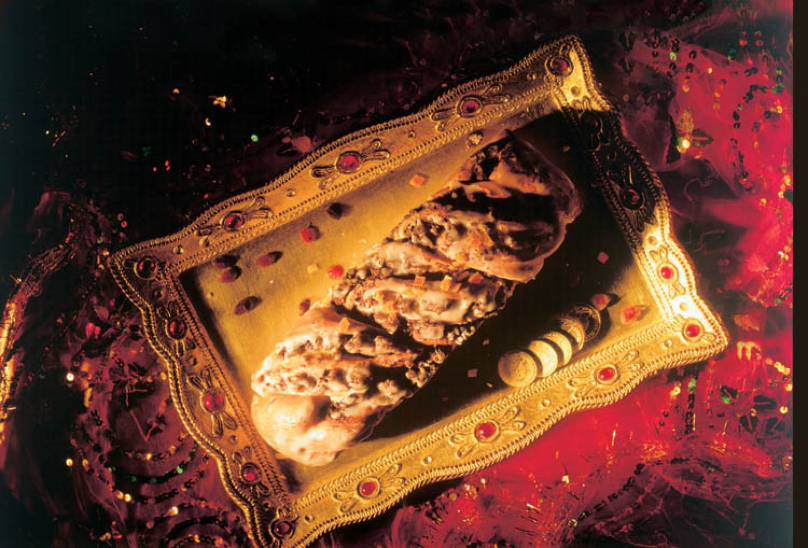 Drożdże rozetrzyj z łyżką cukru i rozprowadź odrobiną mleka, aż masa będzie miała konsystencję gęstej śmietany. Do podrośniętych drożdży dodaj przesianą mąkę, żółtka, cukier, resztę mleka, cukier waniliowy, startą skórkę cytrynową i odrobinę soli. Wyrabiaj ciasto, aż zacznie odstawać. Wtedy dodaj letnie roztopione masło i wyrabiaj dalej. Kiedy ciasto będzie gładkie, przykryj ściereczką i odstaw do wyrośnięcia w ciepłym miejscu. Opłukany mak sparz gorącą wodą i pozostaw na godzinę. Odcedź i przepuść dwa, trzy razy przez maszynkę do mięsa. Zmielony mak włóż do rondla, dodaj cukier, miód i podgrzewaj na małym ogniu, dopóki cukier się nie rozpuści. Wtedy wrzuć sparzone rodzynki, posiekane migdały, cukier waniliowy, skórkę pomarańczową i olejek migdałowy. Ubij pianę z białek i zmieszaj z makową masą. Z wyrośniętego ciasta rozwałkuj prostokątne placki. Wyłóż na nie ciepłą masę makową i zawiń brzegi ciasta do środka, tak by powstał rulon. Przełóż do podłużnych wąskich foremek, piecz w 180°C przez pół godziny.