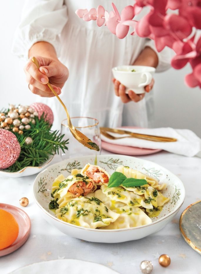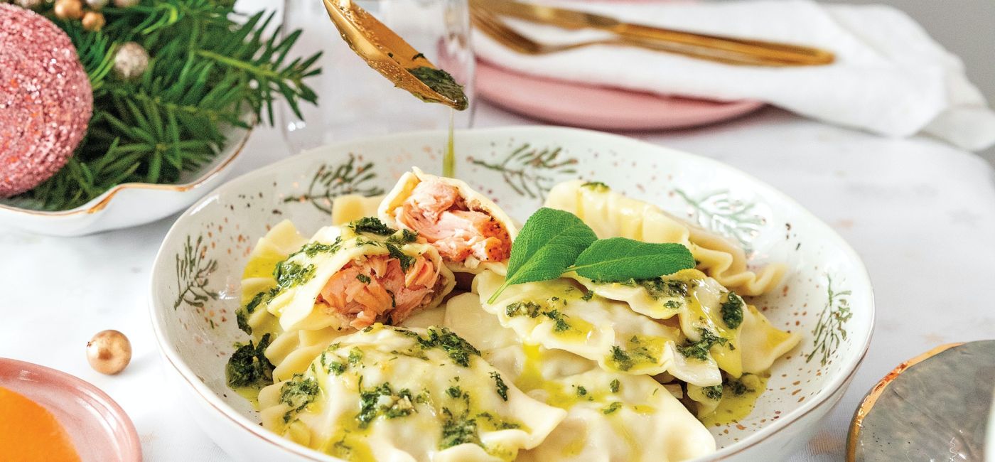 4. Przepis na pierogi z łososiem i szałwiowym masłem