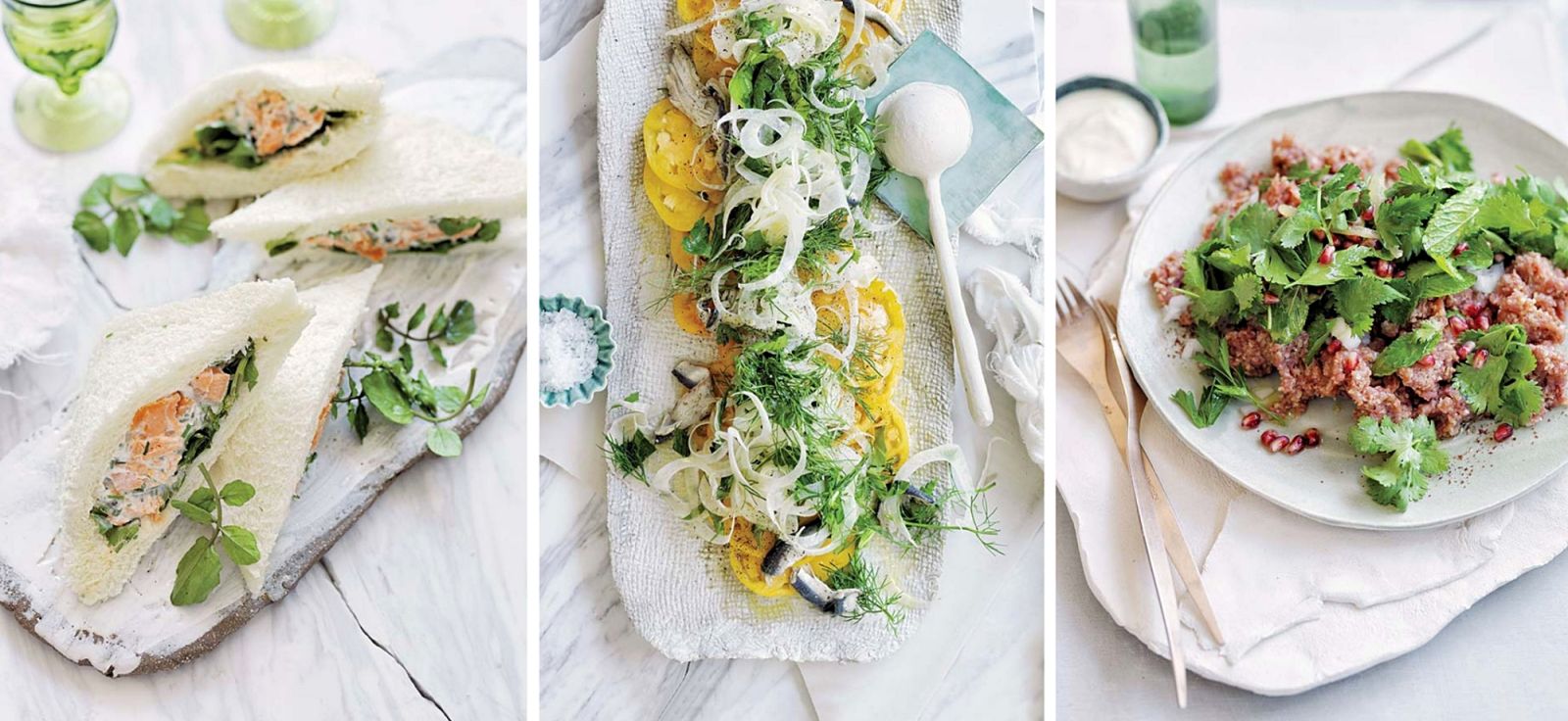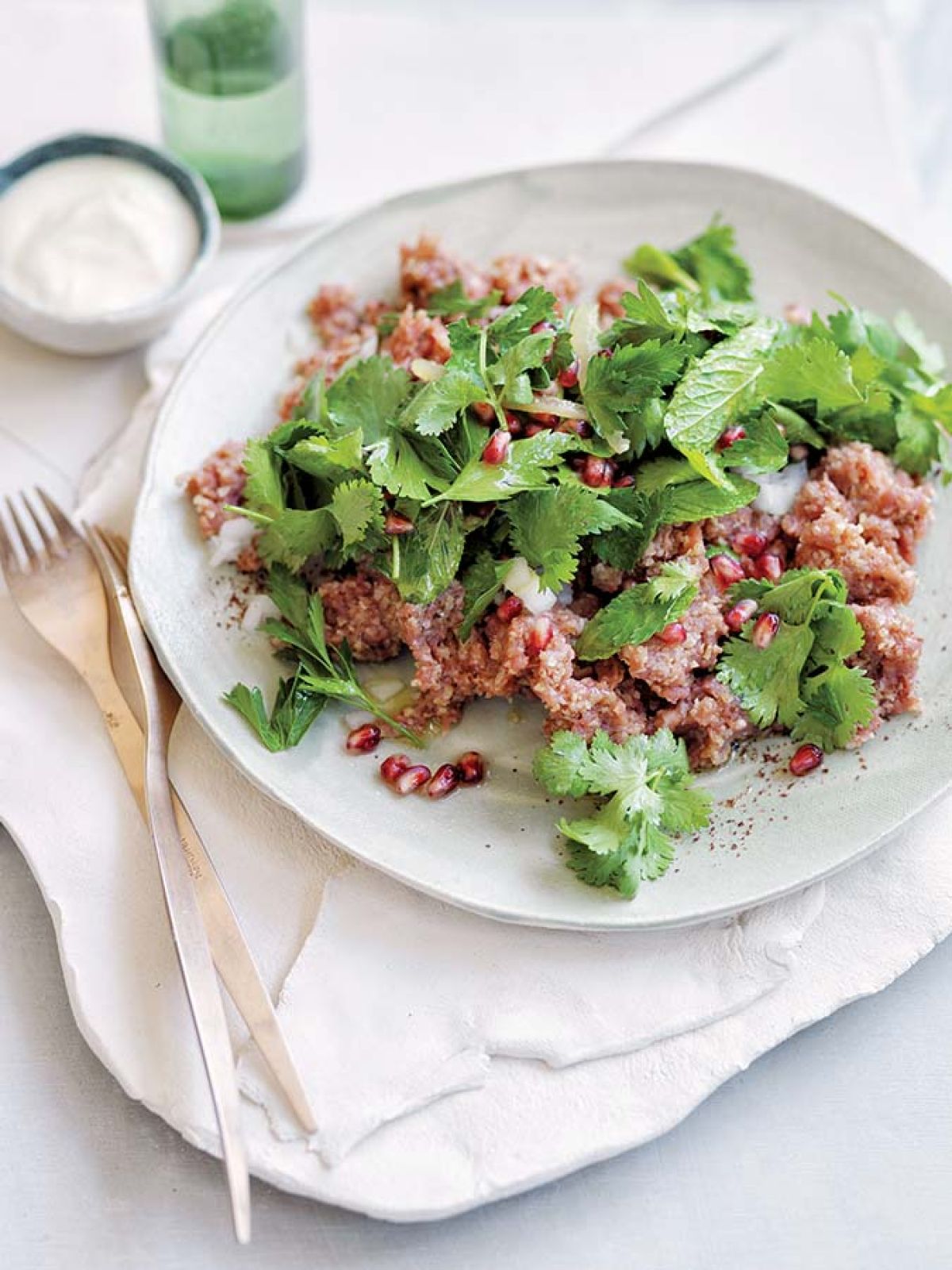 1. Przepis na libański tatar z sałatką z ziół i owocem granatu