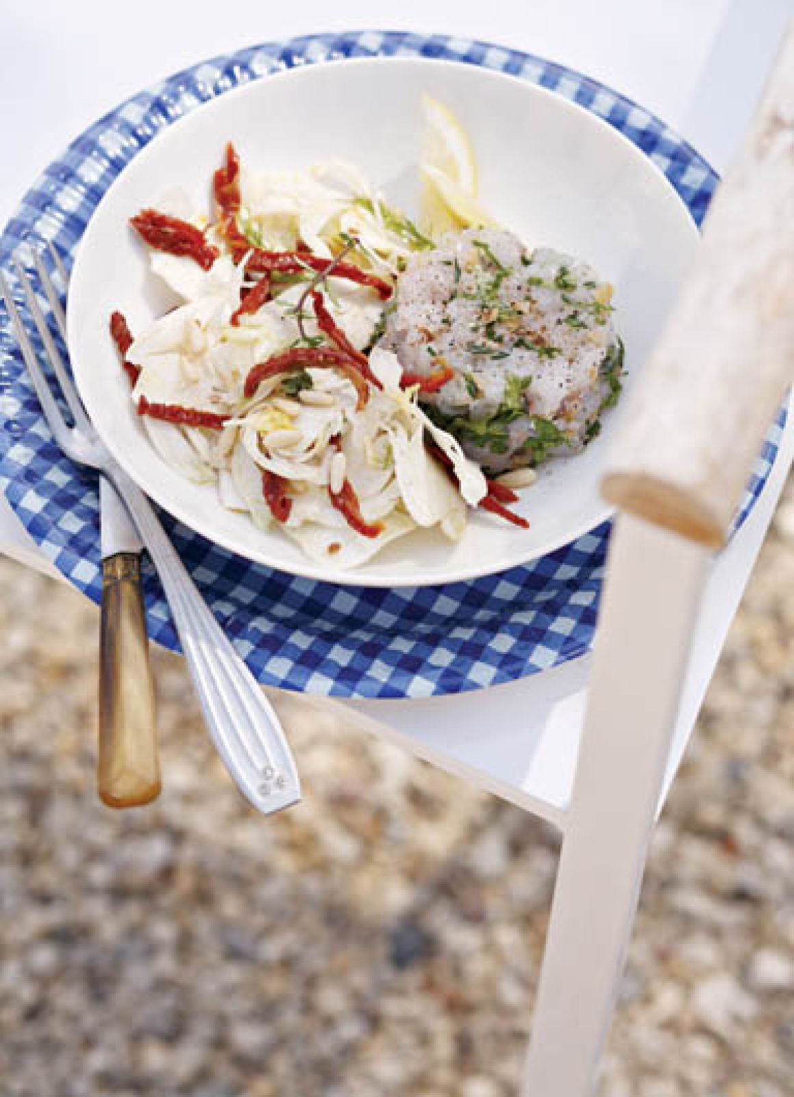 Tatar z pstrąga z sałatką z kopru włoskiego