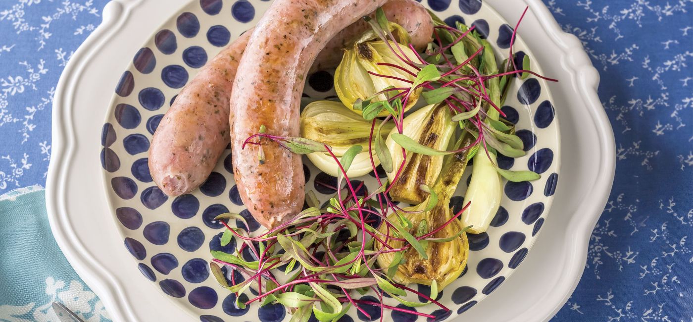 6. Tradycyjne potrawy wielkanocne – biała kiełbasa pieczona z dymką i miodem