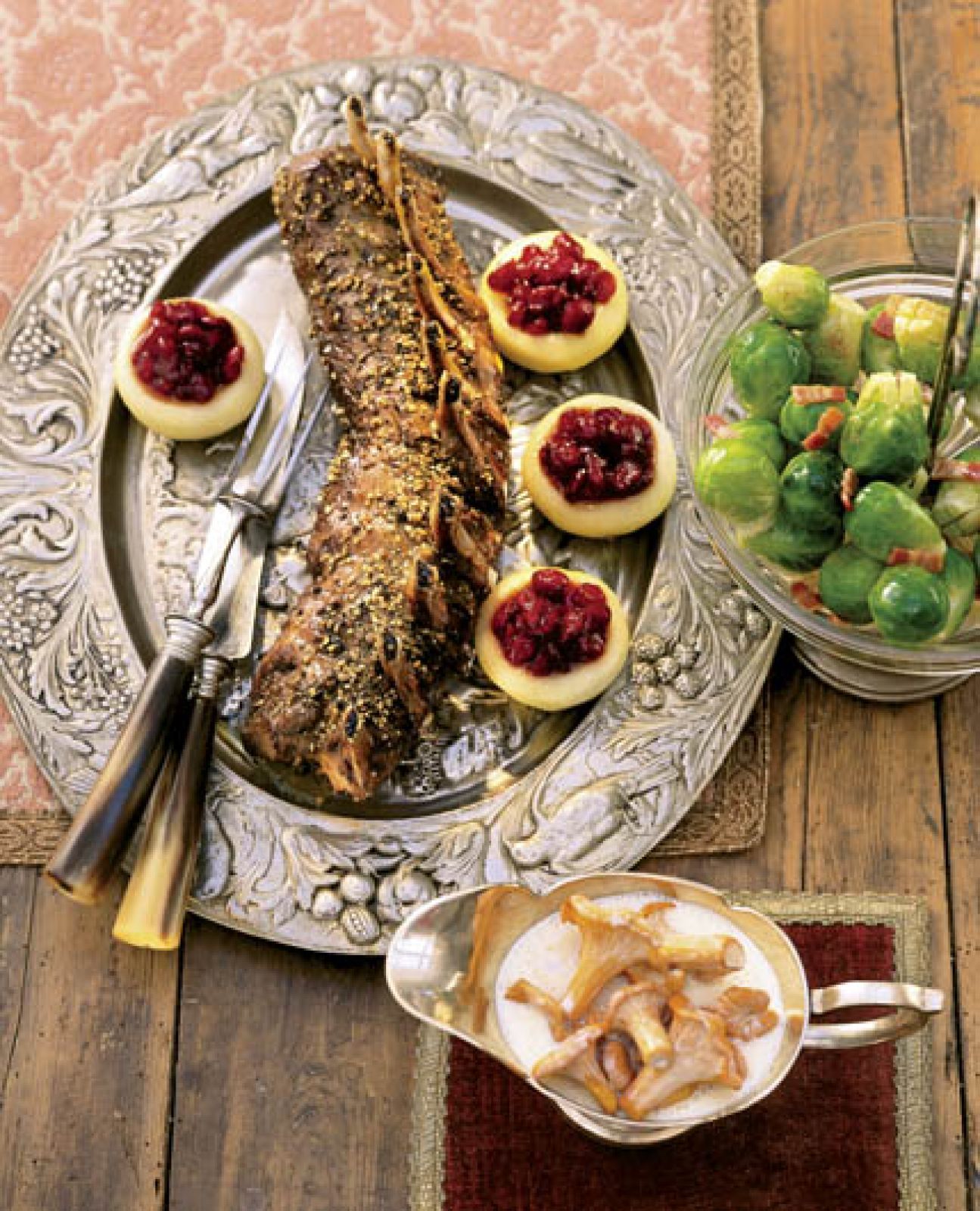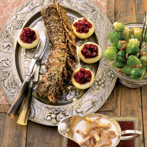Comber jagnięcy z sosem grzybowym i pieczonymi jabłkami