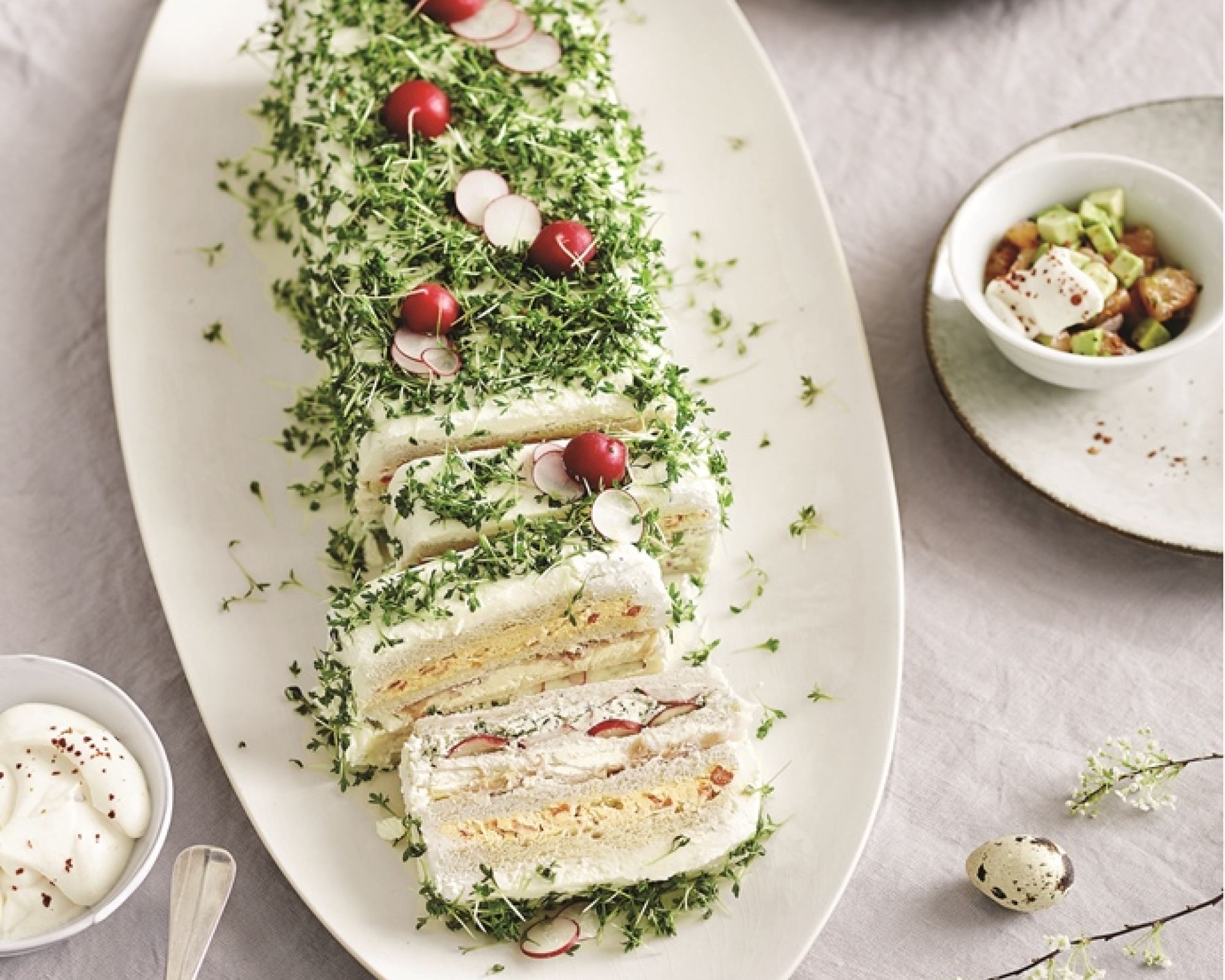 Tort kanapkowy z masą twarożkową, pancakes z sałatką jabłkowo-rzodkiewkową i dip z czerwonej soczewicy. Poczuj wiosenną lekkość na talerzu!