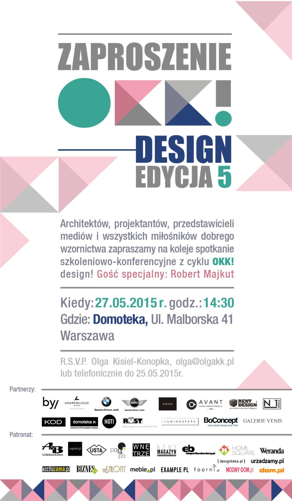 Wspólnie z przedstawicielami firm rynku wnętrzarskiego, reprezentantami środowiska akademickiego, czołowymi projektantami form przemysłowych zapraszamy do udziału w kolejnej edycji spotkania szkoleniowo-konferencyjnego, które odbędzie się 27.05.2015 w godzinach: 14.30 – 19.00 w CWW Domoteka, ul. Malborska 41, Warszawa .