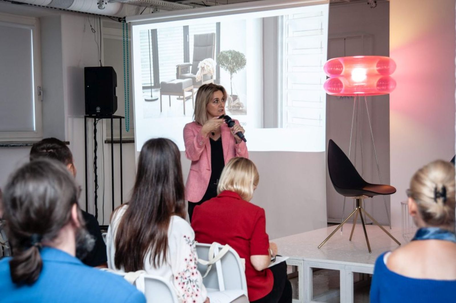 Spotkanie otworzyły wystąpienia Gości Specjalnych. Jako pierwsza głos zabrała Agnieszka Gołębiewska, reprezentująca firmę Anwis, która przedstawiła najnowsze tendencje w dekoracji okien. Kolejna prezentacja dotyczyła przenikania się dobrego wzornictwa i ekologii, w ten temat wprowadził wszystkich Jacek Kula z firmy Barlinek. Dzięki Kamilowi Maślance z BoConcept Warszawa, przenieśliśmy się natomiast do świata duńskiego designu.