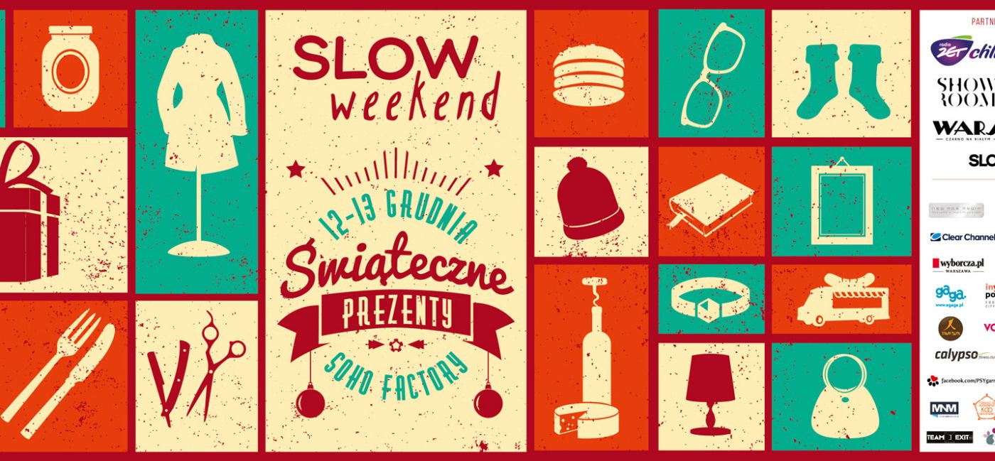 Slow Weekend: 12 i 13 grudnia, ul. Mińska 25 w Warszawie, godziny otwarcia: 11.00 - 19.00. Wejście bezpłatne. Możliwość wstępu ze zwierzętami. Możliwość swobodnego poruszania się po imprezie przez osoby niepełnosprawne.