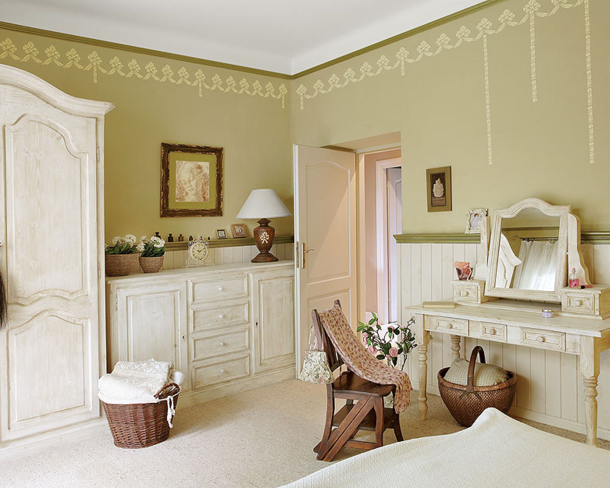 Czasem niewiele trzeba, by zmienić nastrój w pomieszczeniu. Zamiast przemalowywania ścian, można na nich zaaranżować ozdobny wzór lub szlaczek. Kokardki, kwiaty, motyle - te wzory będą w sam raz dla wszystkich, którzy chcieliby uzuskać efekt romantyzmu, sieskości albo... pałacowej komnaty. Jak to zrobić z załączonym wzorem kokardek? Długość „kutasików” ma tu wielkie znaczenie (chodzi o to, co zwisa z girlandy albo festonu). Jeśli są bardzo krótkie i wszy