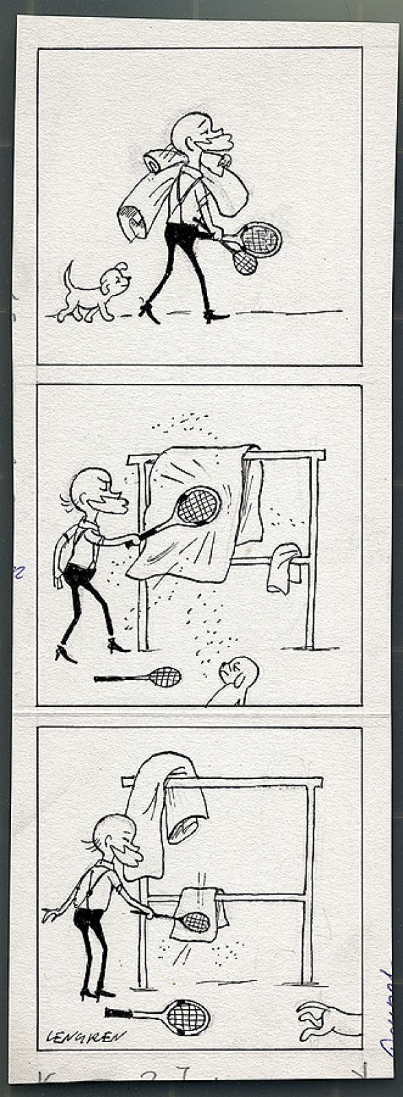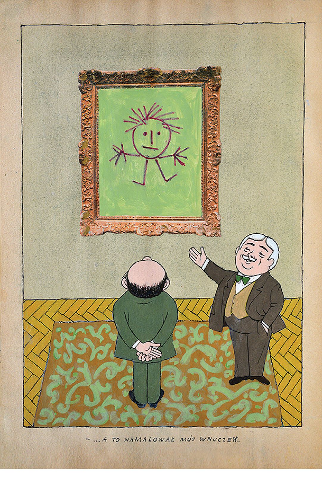 RYSOWNIK. K.L.: – Powtarzał, że nie jest artystą, tylko rzemieślnikiem. Precyzyjnym. Ćwiczył jak pianista, codziennie, by nie wyjść z wprawy. Jego mistrzostwo w rysowaniu polegało na syntezie, oszczędności formy, kilkoma kreskami budował przestrzeń. Filutek? Podobno w Toruniu (tam ojciec się wychował) był taki pan, który chodził w meloniku i tużurku. Profesor gościł w „Przekroju” od 1946 do 2003 roku. Na pierwszym rysunku podkreślał błędy w zdaniu napisanym na płocie. A ojciec był dyslektykiem. Filutek miał psa Filusia i te rysunki, na których rozpieszcza kundelka, były bardzo prawdziwe, bo ojciec szanował zwierzęta – nigdy nie przepędził kota, który rozłożył się na jego fotelu, siadał na brzeżku, byle go nie obudzić. Ale Filutek był jego szczęściem i przekleństwem. Nie daj Boże, gdy ktoś pytał: „A jak pan te Filutki rysuje?”. Miał u ojca przechlapane. Złościł się, że ludzie kojarzą go tylko z nim. Czasem mówił: „Dzisiaj Filutek wpadnie pod tramwaj i już go nie będzie”. Ale był. A ja mu go jeszcze na grobie wyryłam na złość.