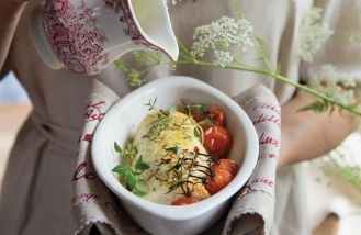 Przepisy z kozim serem – pyszna tarta z pomidorami, faszerowany bakłażan, sałatka i obłędny deser z malinami