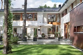 Szlachetne materiały, stonowane kolory i inspiracje art déco – eleganckie wnętrza modernistycznej willi na Mokotowie