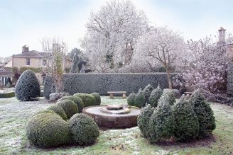Pełen kwiatów ogród Fullers Mill przy starym młynie wodnym