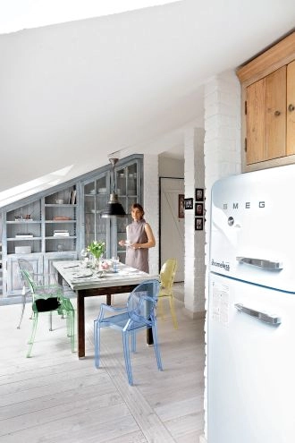 Jak urządzić mieszkanie na poddaszu? W tym 80-metrowym wnętrzu architektka perfekcyjne wykorzystała skosy!