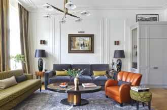 Stylowe meble obok nowoczesnych, oryginalna wyspa kuchenna i dzieła sztuki – mieszkanie w kamienicy na Mokotowie