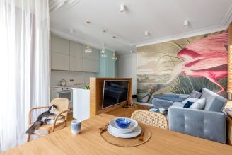 Sprytnie i funkcjonalnie zaprojektowane 48-metrowe mieszkanie – z otwartą przestrzenią, meblami na wymiar i modnymi łukami