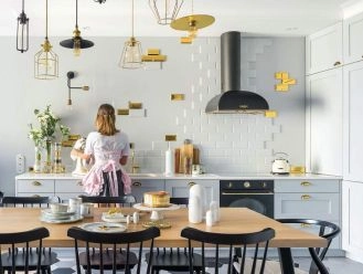 To mieszkanie jest oazą spokoju dla fotografki i jej rodziny. Przytulności przestronnym wnętrzom dodają ciepłe kolory i złote dodatki