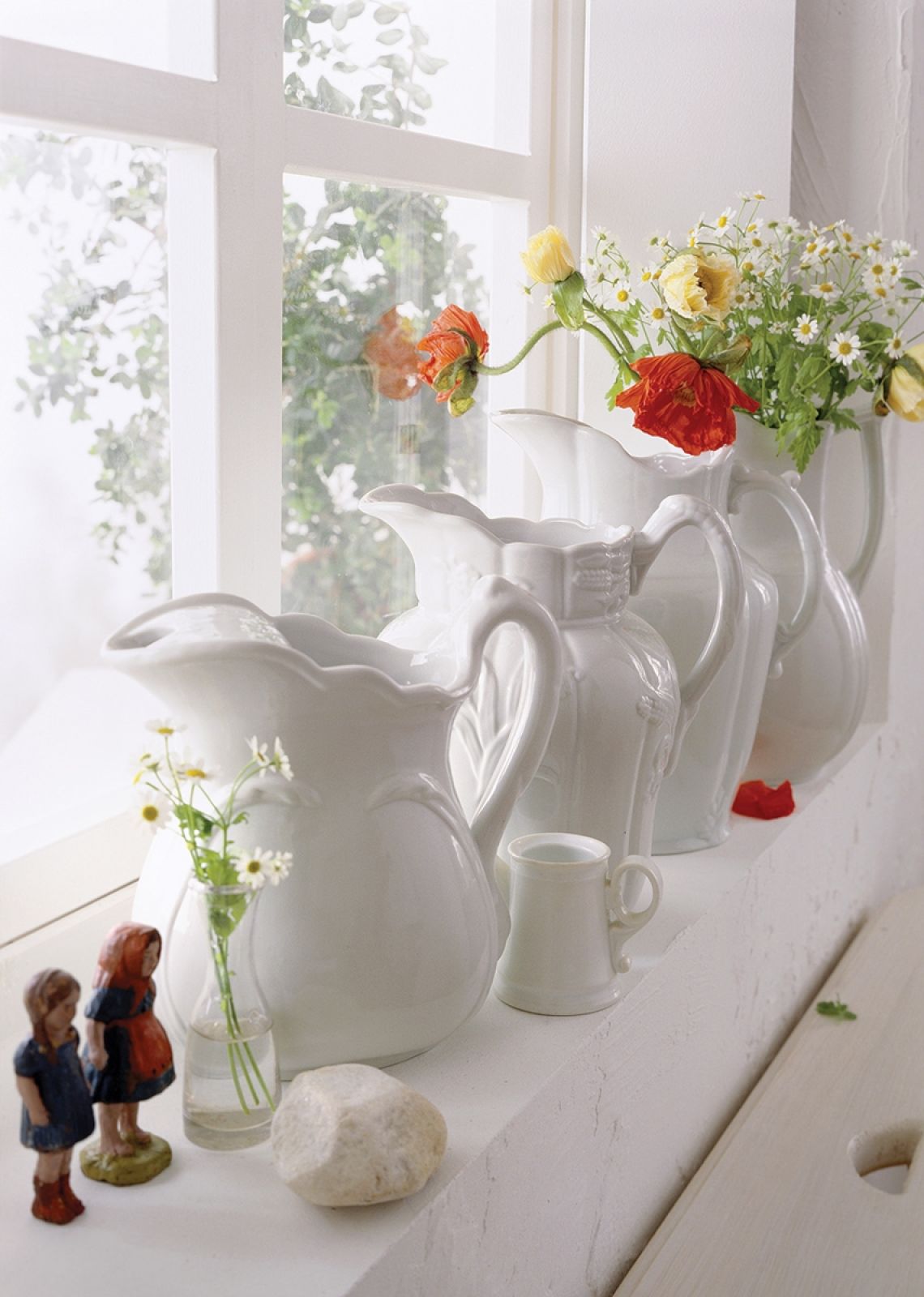 Na parapet może trafić kilka książek czy pięknie wydanych albumów, porcelanowe figurki, jakieś skarby zdobyte na pchlim targu albo odziedziczone po babci. Lepiej mniej i ładnych, niż więcej. Zwłaszcza, że można je zmieniać, żeby w oknach nigdy nie było nudy. Wiosenne dekoracje parapetów są jak nasze małe prywatne galerie!