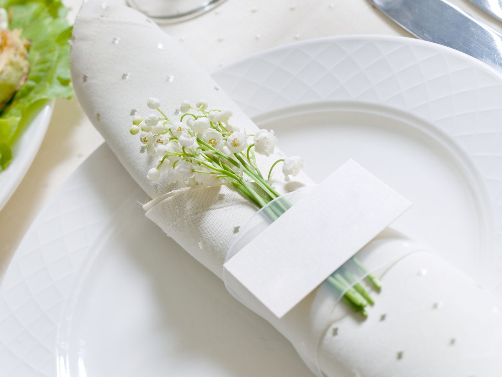 Warto znaleźć też miejsce dla kwiatów przy talerzykach gości, na przykład tuż obok sztućców lub we wstążeczce z serwetką. Więcej inspiracji roślinnych znajduje się w artykule: Eleganckie dekoracje z białych kwiatów.