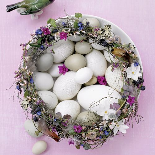 Ręka ludzka od tysiącleci próbuje nadążyć za pięknem, jakie oferuje natura. Próżno szukać dwóch identycznych jajek. Kury przynoszą białe lub pomarańczowe, przepiórki – nakrapiane, a perliczki – cętkowane. Fanom surowej urody wystarczy lekkie przystrojenie wstążeczką lub odwołanie do źródła: podanie jaj w trawie, piórach lub na drewnie. Dekoracje wielkanocne w takiej odsłonie uzupełnią wnętrza inspirowane ekologią, na przykład skandynawskie.