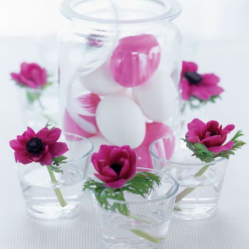 Motyw roślinny jest hitem roku, dlatego najbliższa Wielkanoc nie może obyć się bez kwiatów. To właśnie na rumianek, tulipany i róże najczęściej pada wybór, gdy za tworzenie pisanek zabierają się dzieci. Ta odsłona dekoracji świątecznych jest również wyśmienitym rozwiązaniem dla osób mniej uzdolnionych plastycznie: jednokolorowe jajka wystarczy przystroić świeżym bukietem. Kwiatowe kompozycje są uniwersalne i sprawdzą się w większość wnętrz.
