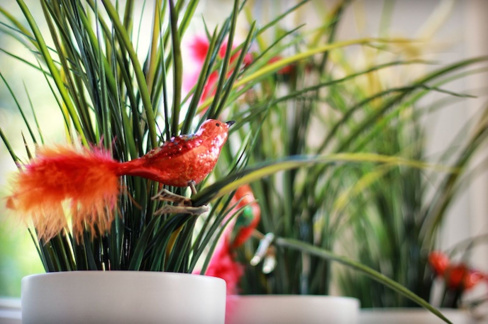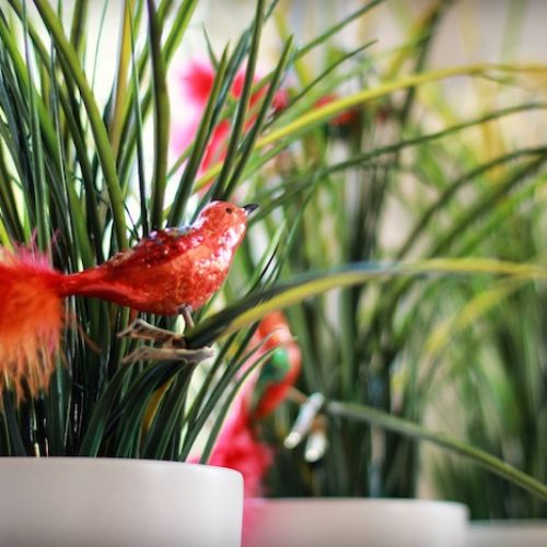 Ptaki są ręcznie wykonane ze szkła, wykończono je piórami, brokatem i cekinami. Mają klips, który umożliwia przypięcie ozdoby do lampy, zasłony czy żaluzji. Można je komponować z kwiatami, lampą, zasłonami. Dobrze wyglądają na obrusie, firanach czy żaluzjach. Zimą mogą powrócić na choinkę.