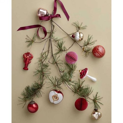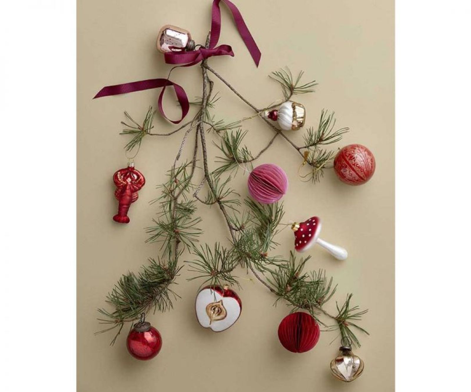 powiesić bombki na gałązkach i udekorować nimi stół, komodę, konsolę albo parapet,