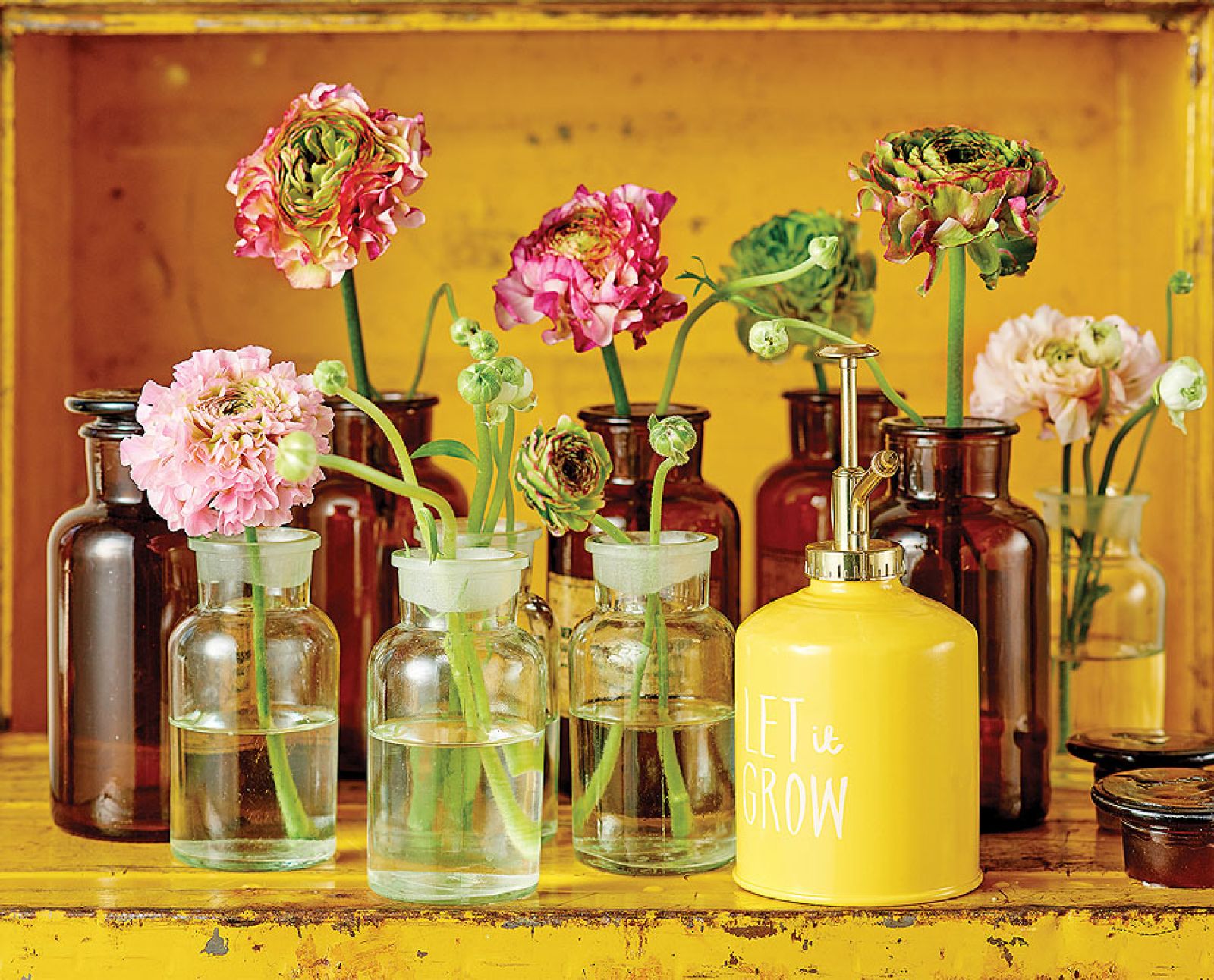 Jaskry w aptecznych słojach wyglądają jak tajemnicza martwa natura. Każdy kwiat jest inny, dlatego potrzebuje osobnego naczynia. Im więcej szkła, tym piękniej odbija się światło.