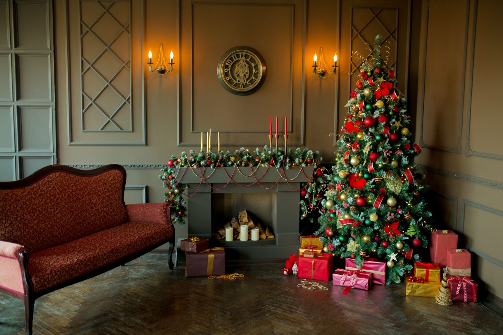 Klasyczne świąteczne kompozycje to połączenie królewskich kolorów – złotego i czerwonego w dekoracjach bożonarodzeniowych. Choinkę ubieramy w czerwone bombki z dmuchanego szkła oraz złote gwiazdy i łańcuchy. Do tradycyjnych ozdób możemy dodać delikatne złociste piórka i czerwone kokardy. Pamiętajmy o światełkach – to one sprawią, że drzewko będzie lśnić.