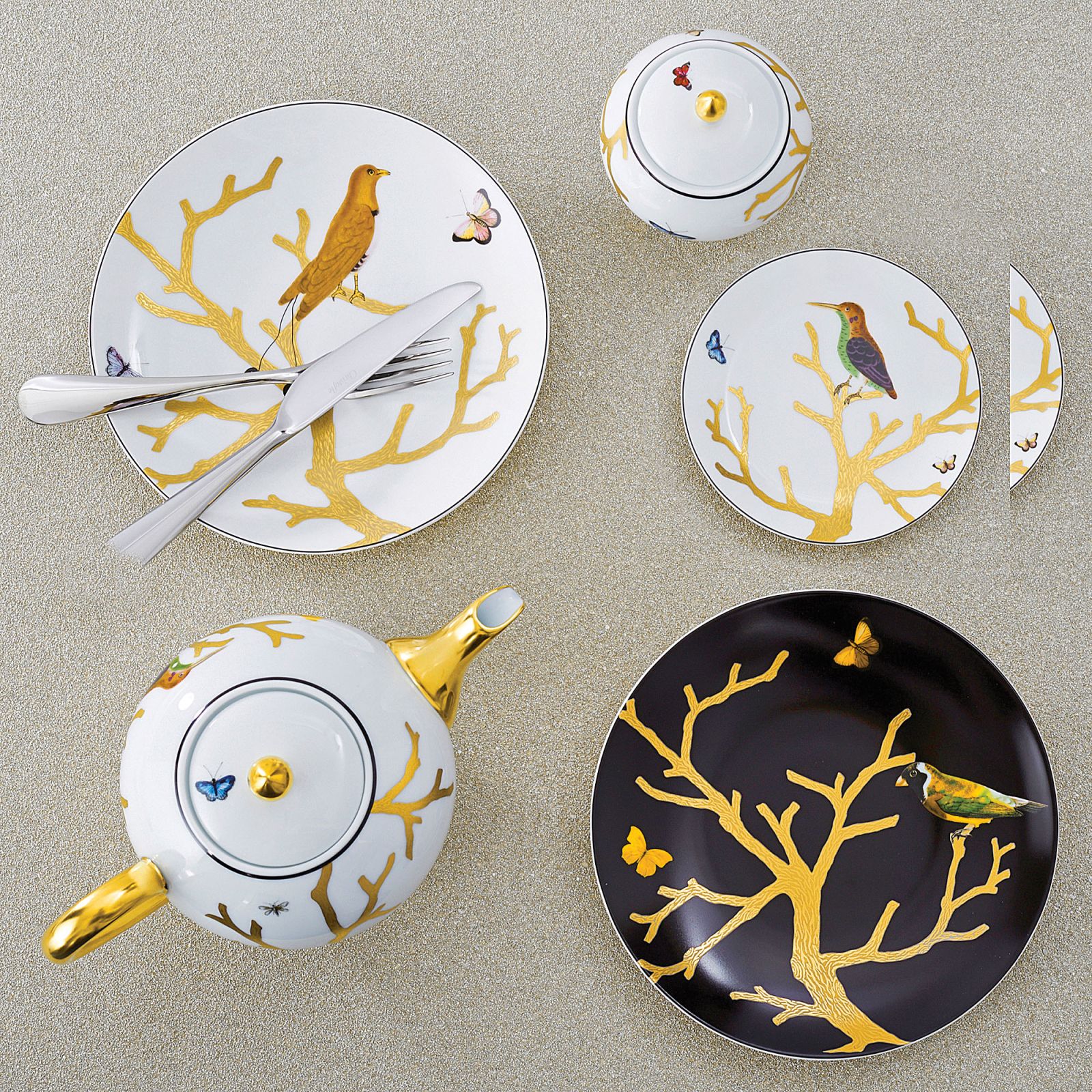 Na stołach ustawiamy talerze z motywem barwnych ptaszyn w koronach drzew. Wieszamy lampy o kloszach w kształcie mew uchwyconych w locie.
