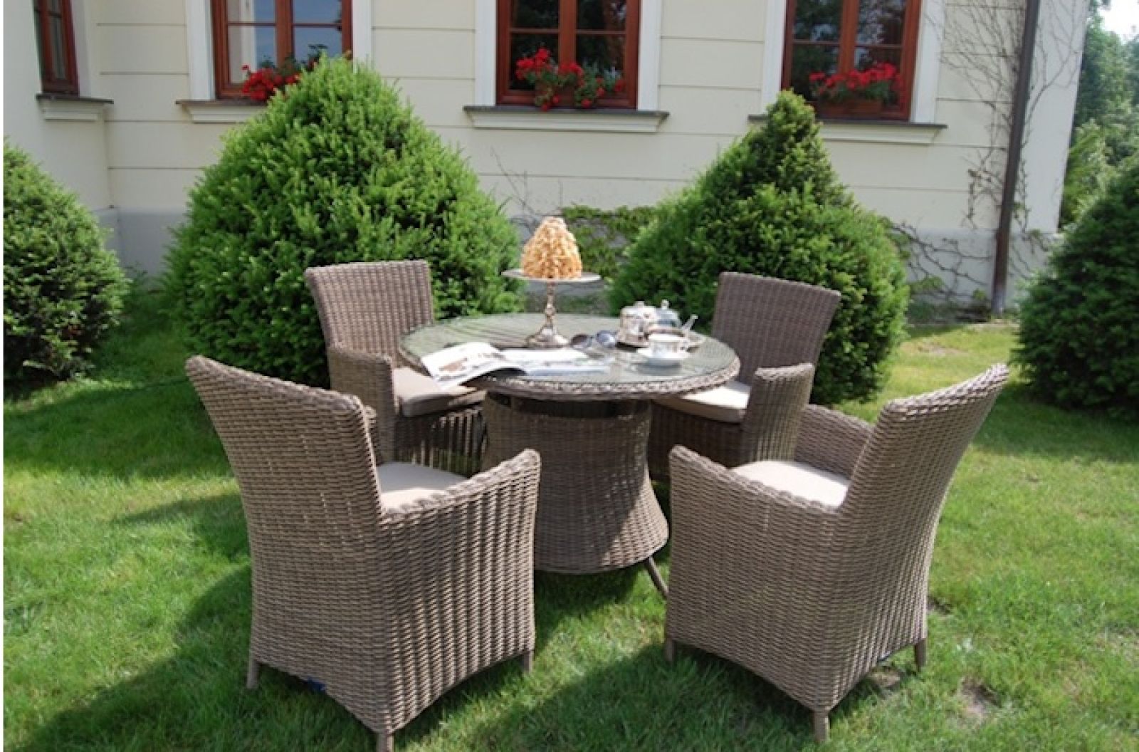 „W meblach o tradycyjnym wzornictwie stosuje się eko-rattan, z którego wyplatane są oparcia i siedziska. Największą zaletą tego tworzywa jest duża odporność na szkodliwe działanie warunków atmosferycznych. Szczególnie atrakcyjnie prezentują się meble wykończone postarzaną bielą, która nadaje im nostalgiczny, prowansalski charakter. Spotyka się także elementy wykonane ze stali chromowanej lub lakierowanej. Dotyczy to modeli o nowoczesnym wzornictwie. W przypadku mebli tapicerowanych, modne są tkaniny w naturalnych kolorach ziemi: odcienie beżu, szarości, złamana biel oraz klasyczna czerń”.