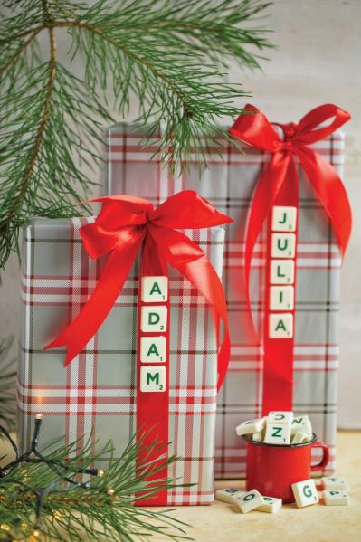 Jak ozdobić zapakowane prezenty? Każdy upominek możesz udekorować świeżą gałązką. Inny pomysł to świąteczne miniwianuszki z rozmarynu. Będą równie ładne jak te świerkowe. Niekompletne płytki z literami gry Scrabble, spinacze, foremki do wycinania świątecznych ciasteczek, różnokolorowe sznureczki i tasiemki też mogą się przydać, by oryginalnie zapakować prezenty pod choinkę.