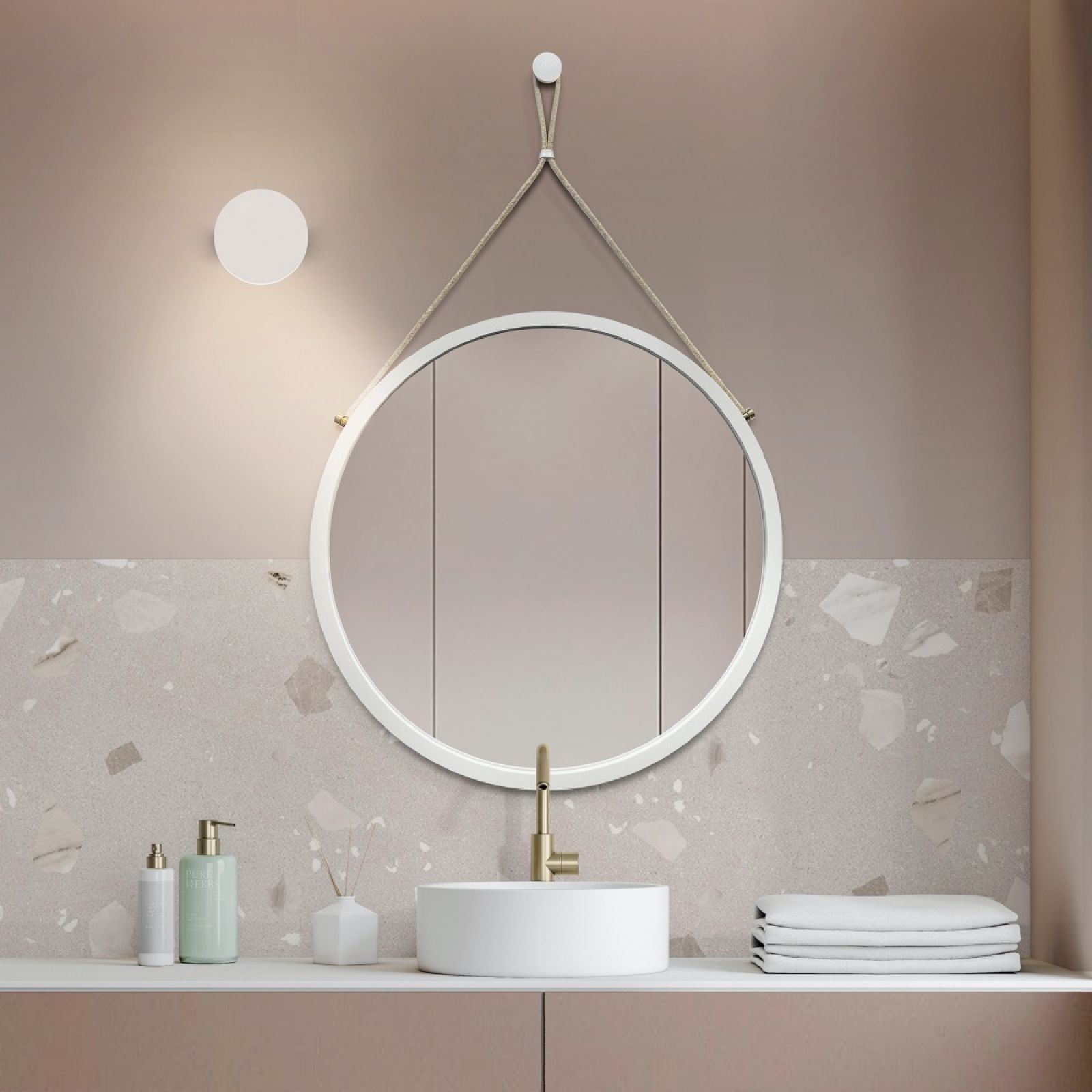 Niezwykle efektownie prezentują się w łazience lustra okrągłe, zarówno w drewnianej, jak i metalowej ramie. Może to dlatego, że swoją formą łagodzą ostre zwykle krawędzie łazienkowych mebli. Hitem ostatnich lat pozostają niezmiennie lustra wiszące na parcianym lub skórzanym sznurku.