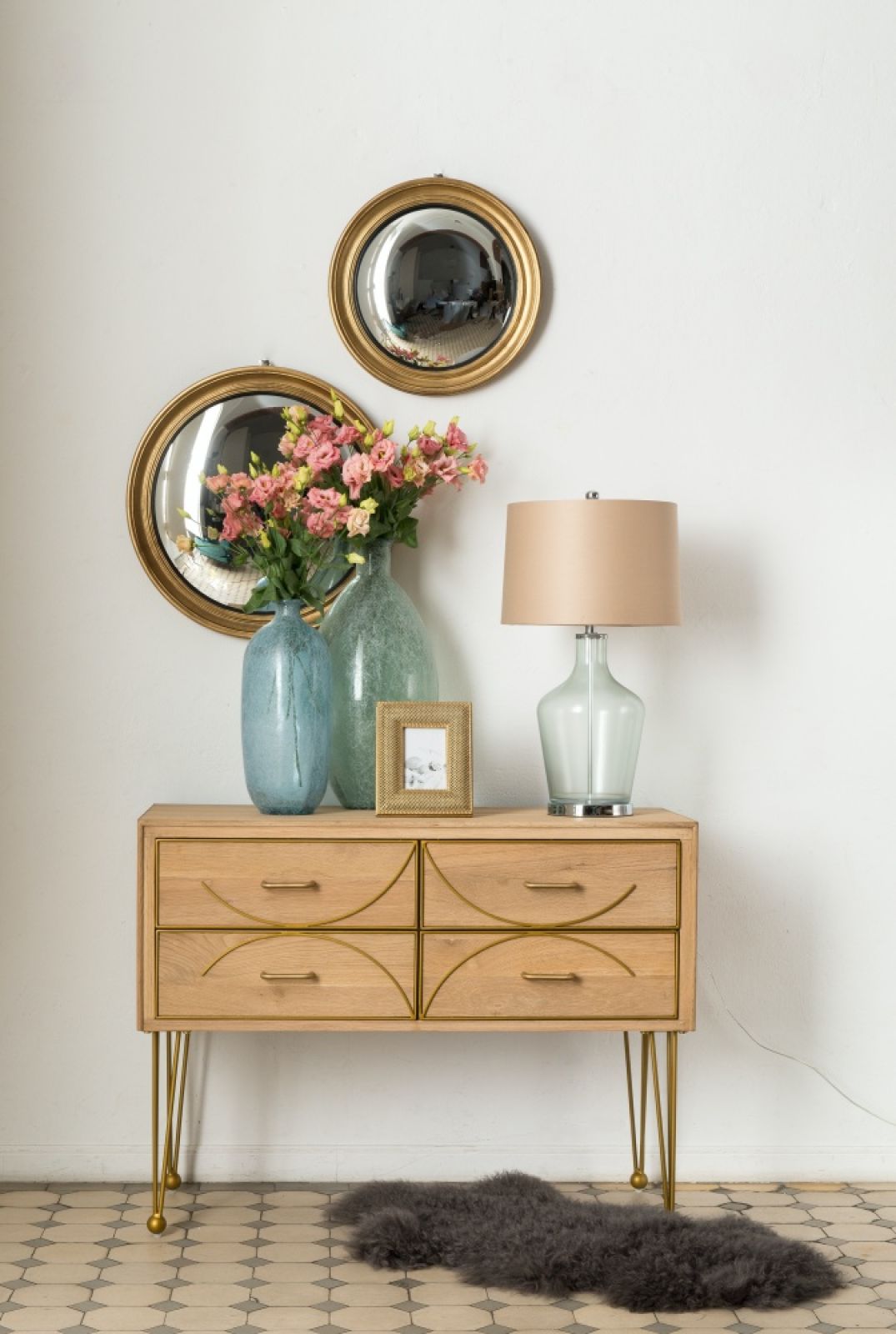 Zwykle przestrzeń w salonie nas nie ogranicza, więc możemy pozwolić sobie na duże, dekoracyjne i stylowe modele na ścianę. Ozdobne lustra, tak jak obrazy, potrzebują „podparcia”. Dlatego najlepiej wybrać dla nich miejsce nad komodą, kominkiem lub stołem.