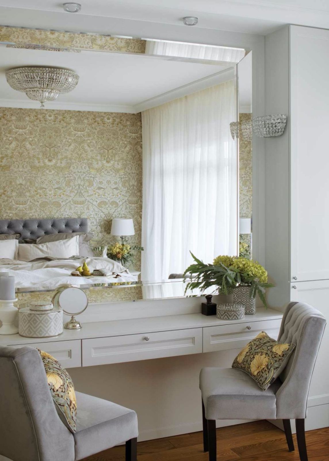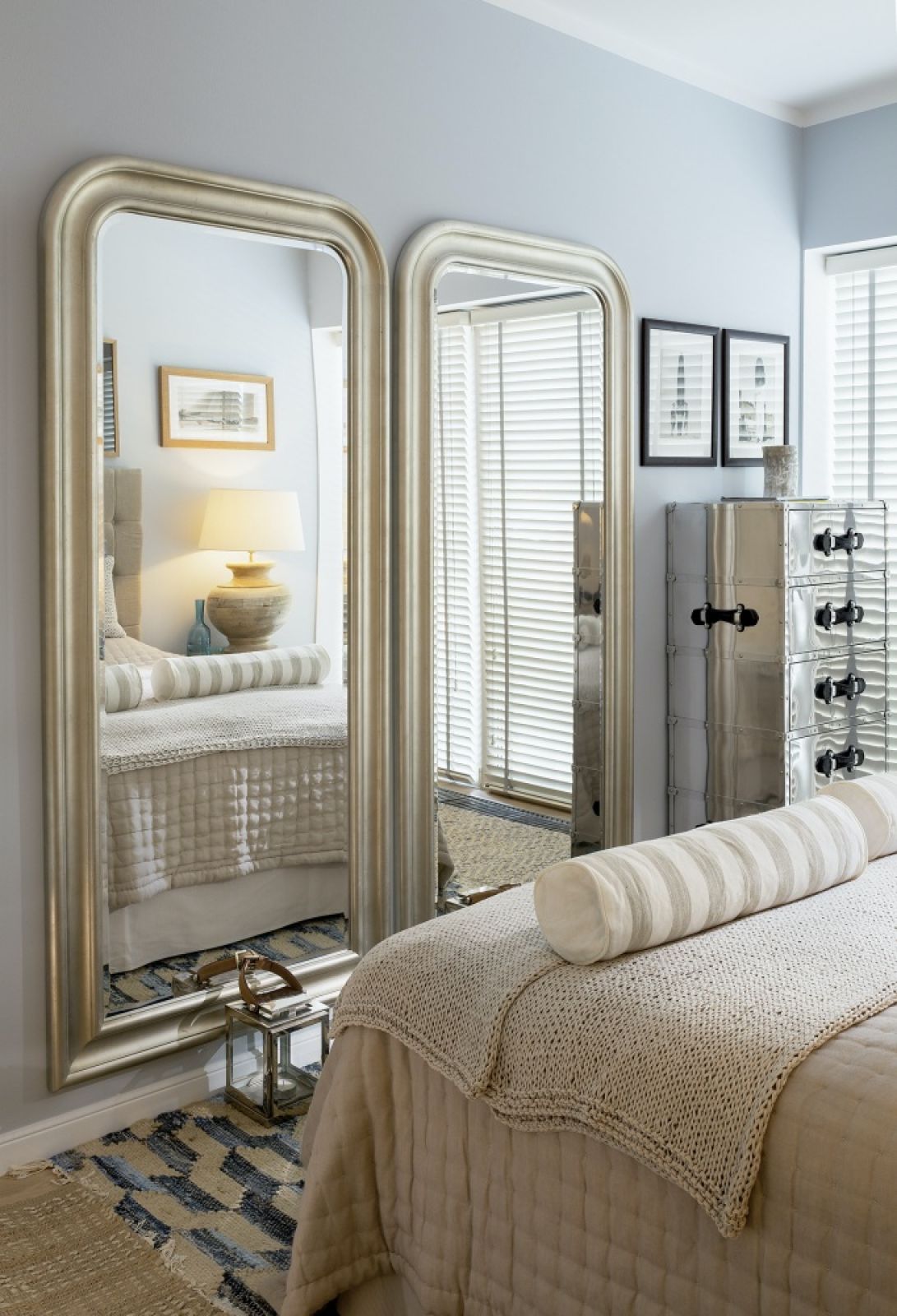 W sypialni ciekawą alternatywą dla dużego prostokątnego lustra wiszącego będzie lustro stojące – wzorem tremo, które pojawiało się dawniej w sklepach krawieckich. Wystarczy postawić lustro na podłodze i oprzeć je o ścianę.