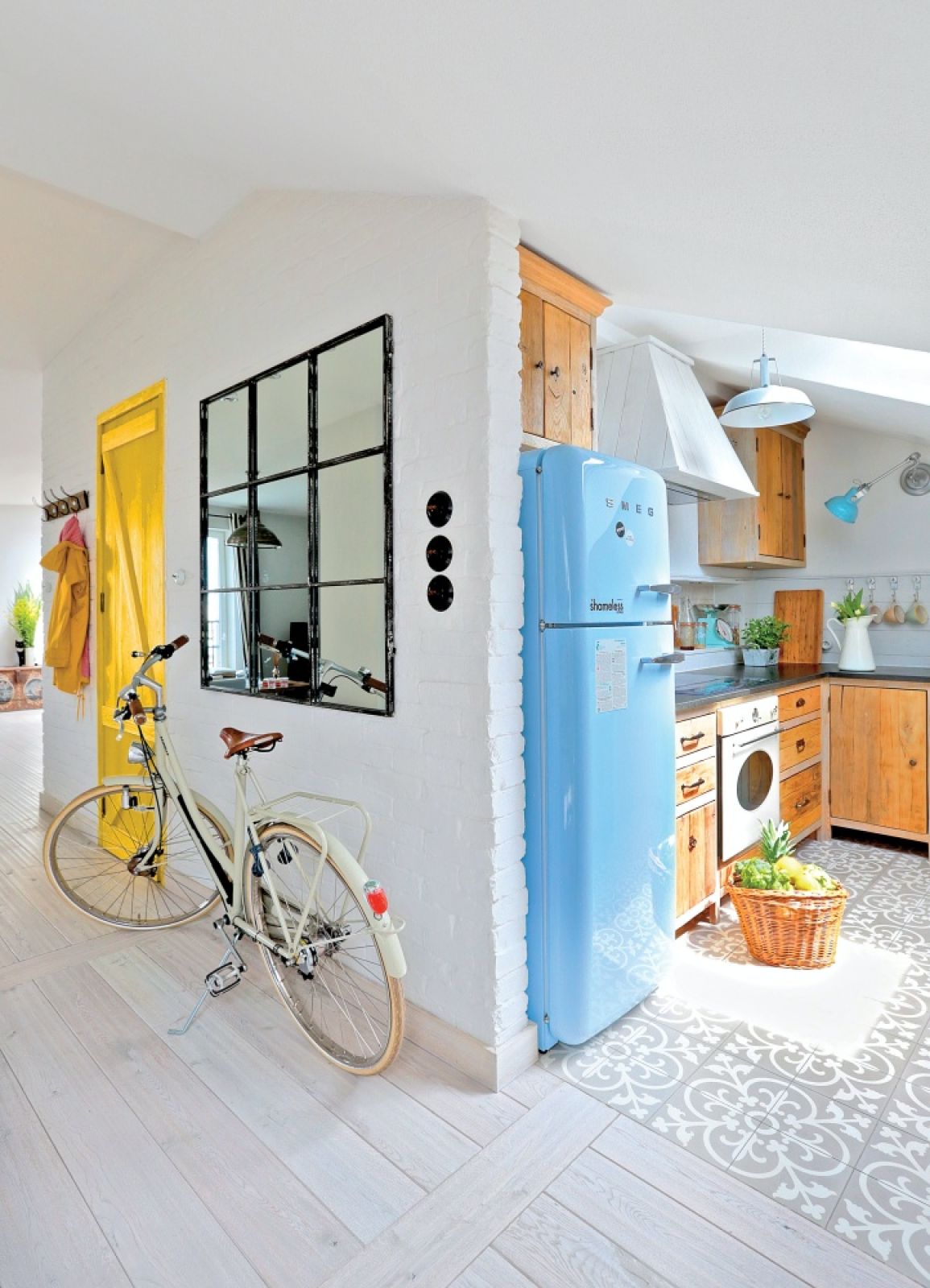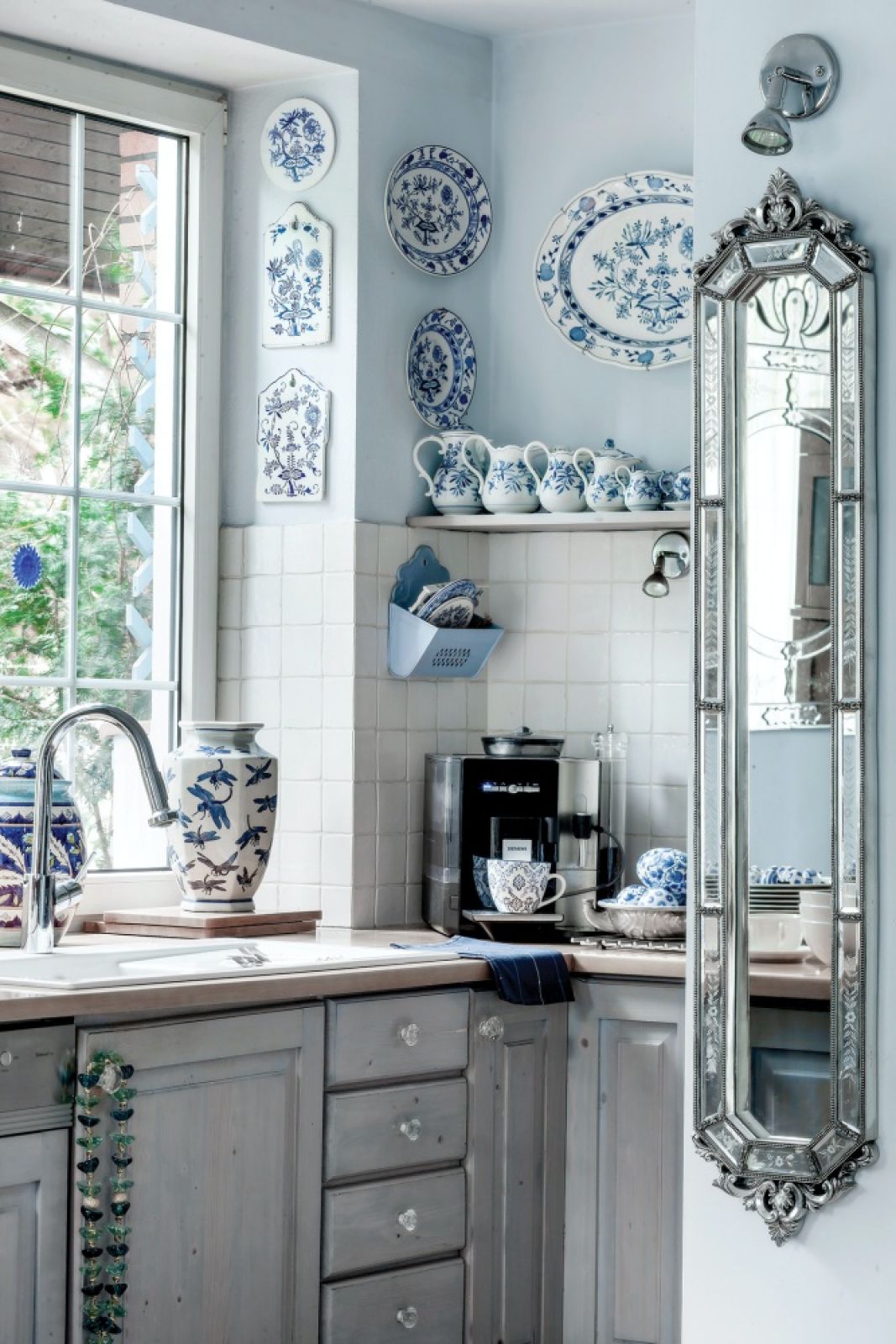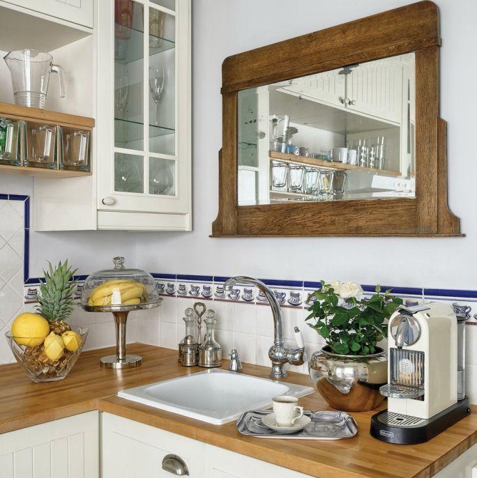 A gdyby tak powiesić lustro w kuchni, miejscu, które dotąd zdawało się dla niego nietrafionym pomysłem? I dodatkowo zestawić surowy industrialny charakter wnętrza z ozdobną postarzaną ramą barokową? Ciekawym patentem będzie zamontowanie lustra w plecach kuchennego kredensu, w którym wyeksponujemy ulubioną zastawę.