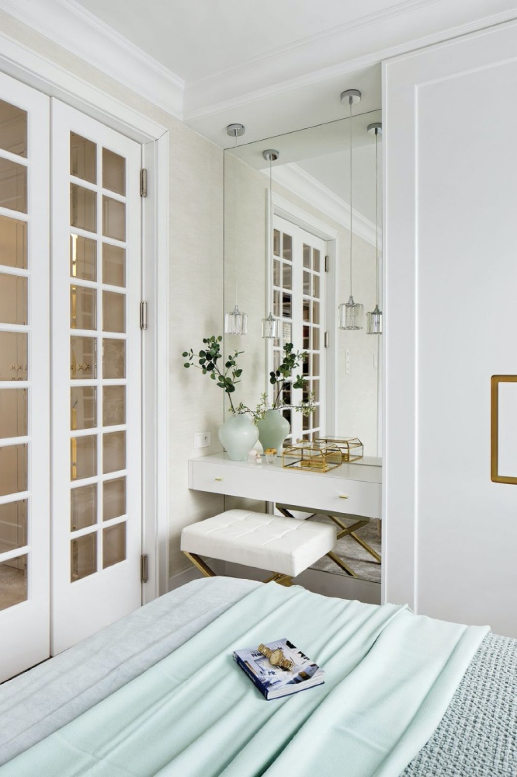 Pomysłowym rozwiązaniem będzie również powieszenie nad łóżkiem kilku takich samych luster obok siebie niczym obrazy albo nawet zrobienie z luster całej ściany, co dość małemu zwykle pokojowi doda głębi. Wreszcie coś dla odważnych: lustro w sypialni na suficie – w ten sposób pokój wyda się wyższy.