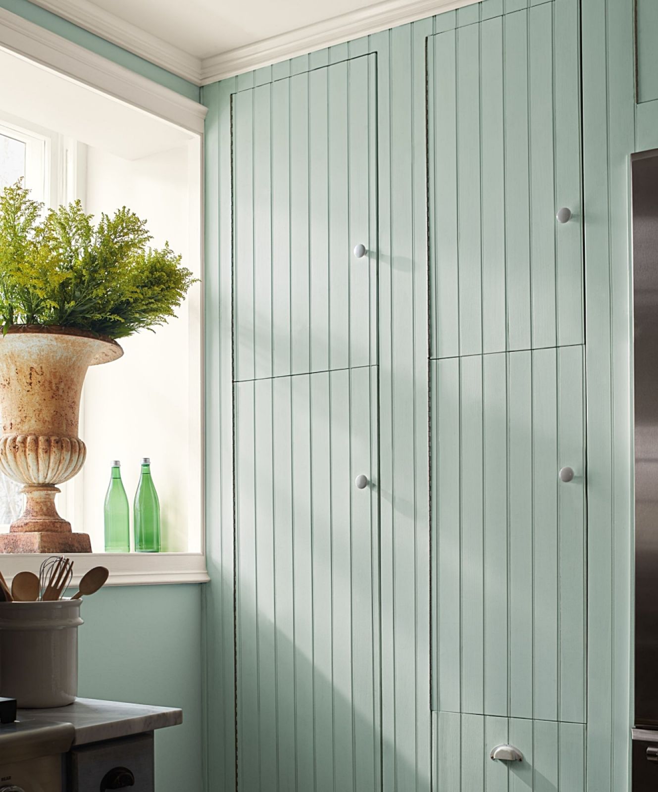 Jak to zrobić w prosty sposób? Pomaluj szafkę ją dokładnie tym samym odcieniem farby, co ścianę za nią.