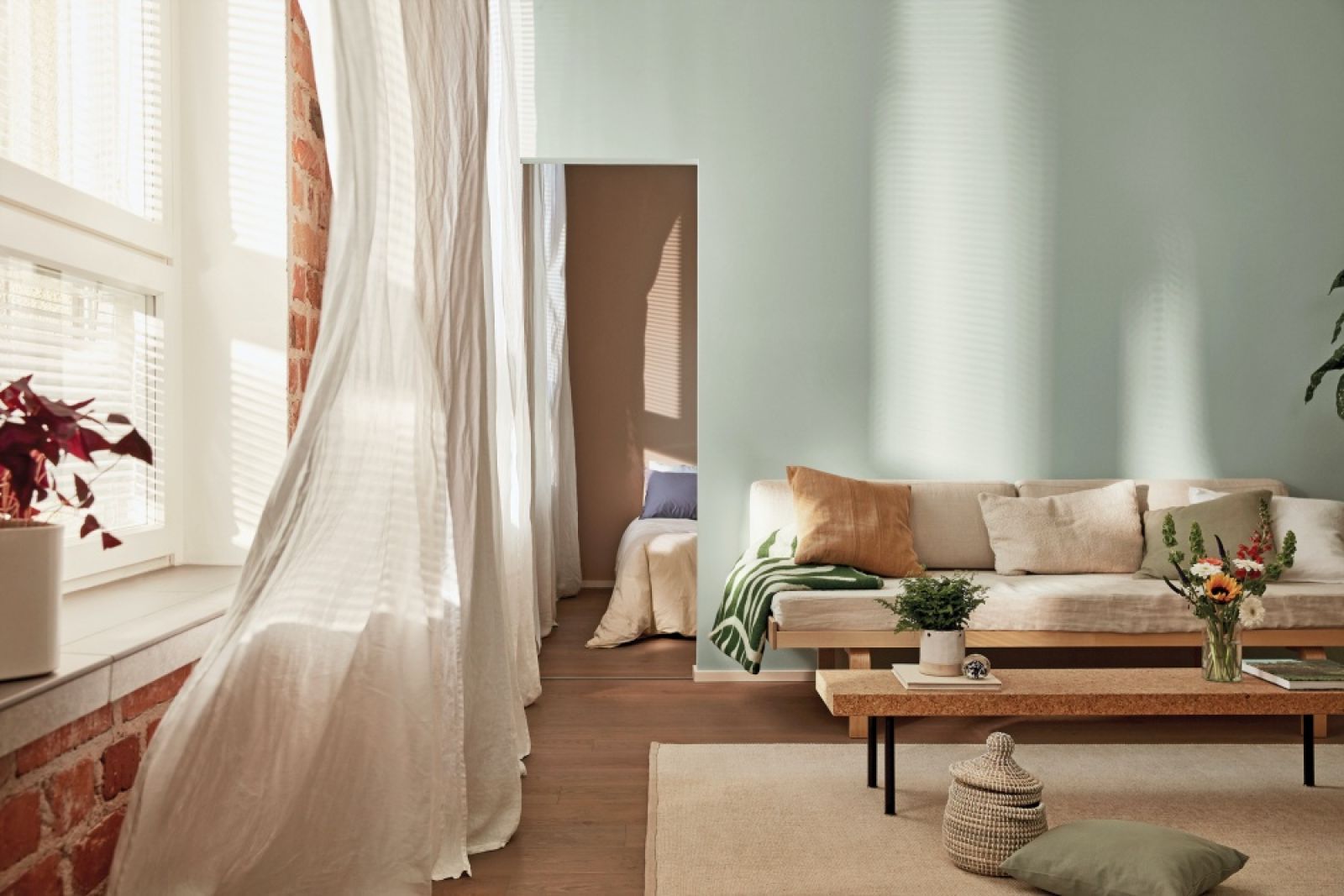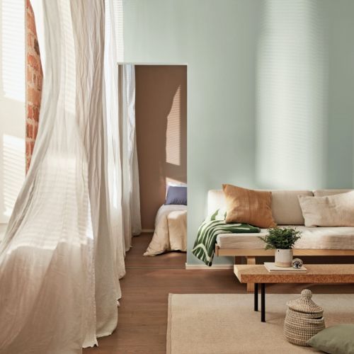 Nasza rada: jeśli marzysz o odpoczynku z dala od miasta, to do Cudownego Beżu dobierz zieleń – głęboką butelkową lub eukaliptusową z kroplą szarości. Da to ciekawy efekt, pozwoli otaczać się relaksującymi kolorami na co dzień oraz stworzy przytulną i świeżą aranżację, która idealnie łączy się z naturalnymi dodatkami i domowymi roślinami.